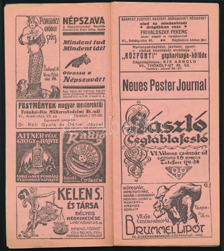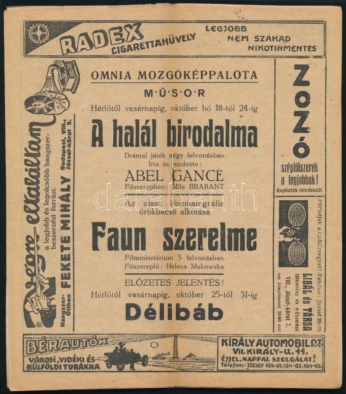 cca 1920 Omnia mozgókép palota műsora, Bp.,Thalia-ny., rengeteg korabeli reklámmal is, színes, litografált...