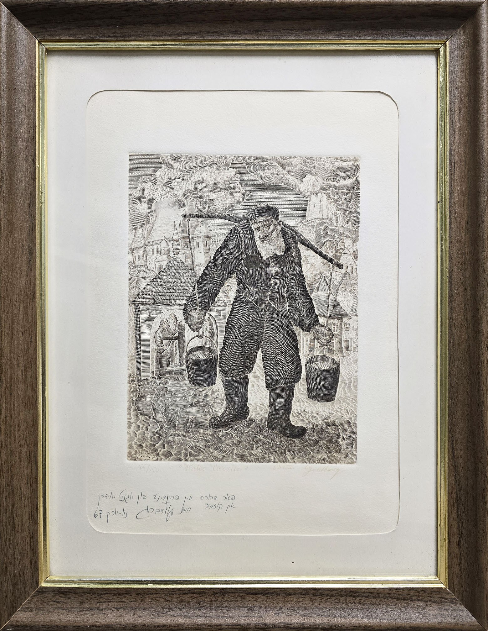 "Nosiwoda" - grafika, która przedstawia postać żydowskiego starca niosącego wodę.