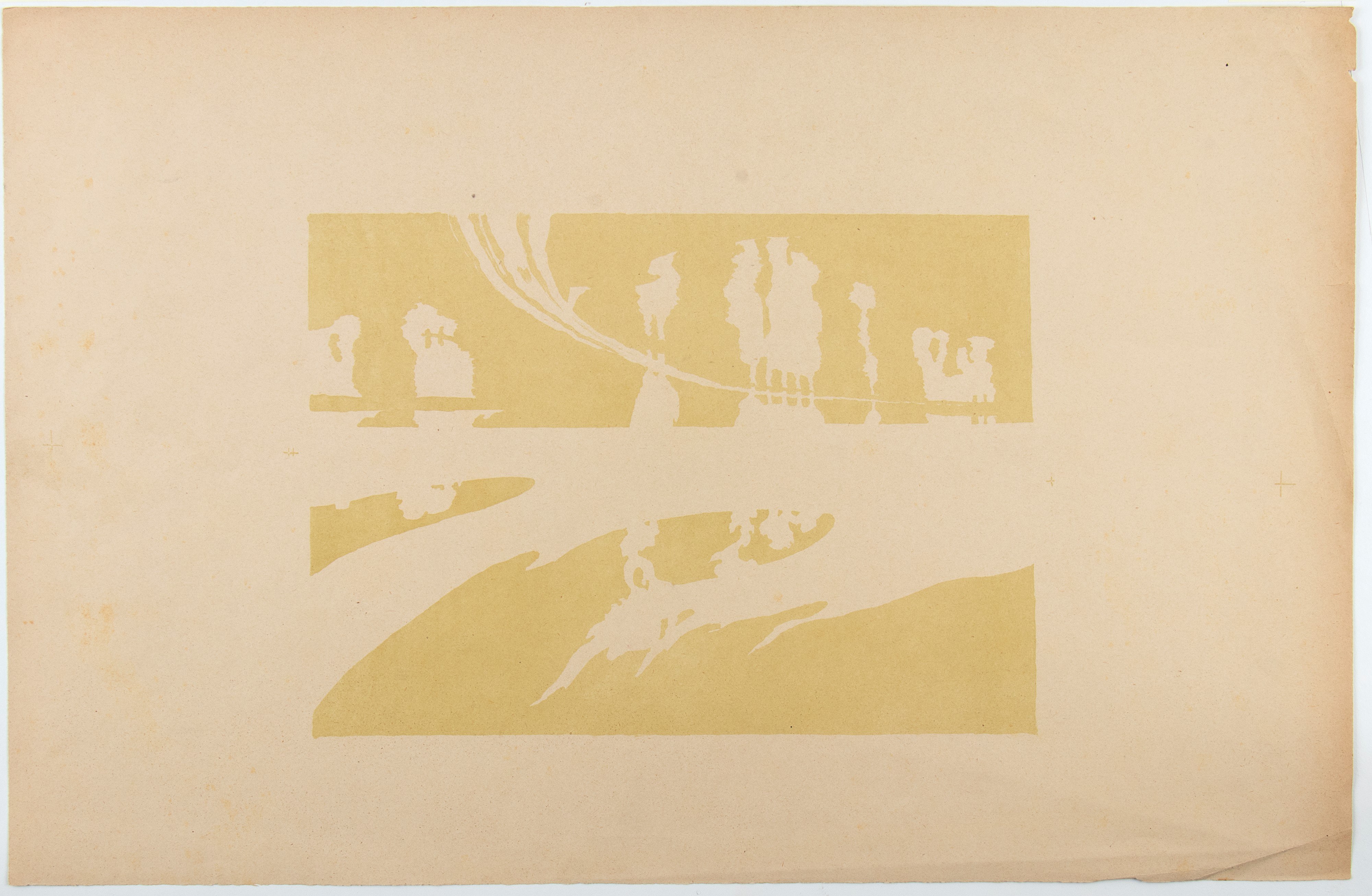 Lot of three working proofs: one color, two colors and three colors. Lithograph, 352 x 540 mm each sheet.