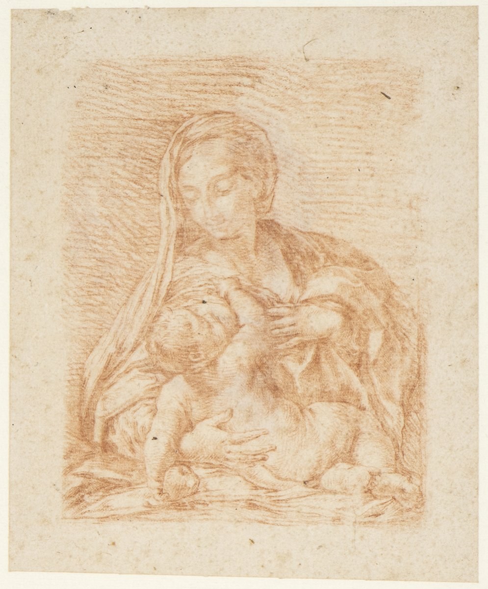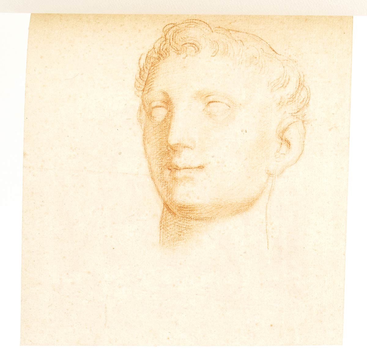Sanguine on brown paper, cm. 16x13,5. Framed