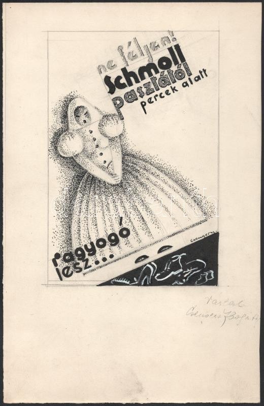 Csengery István (1887-1946) Schmoll paszta plakátterv. tus, vegyes technika, jelzett. Lapméret 30x20 cm