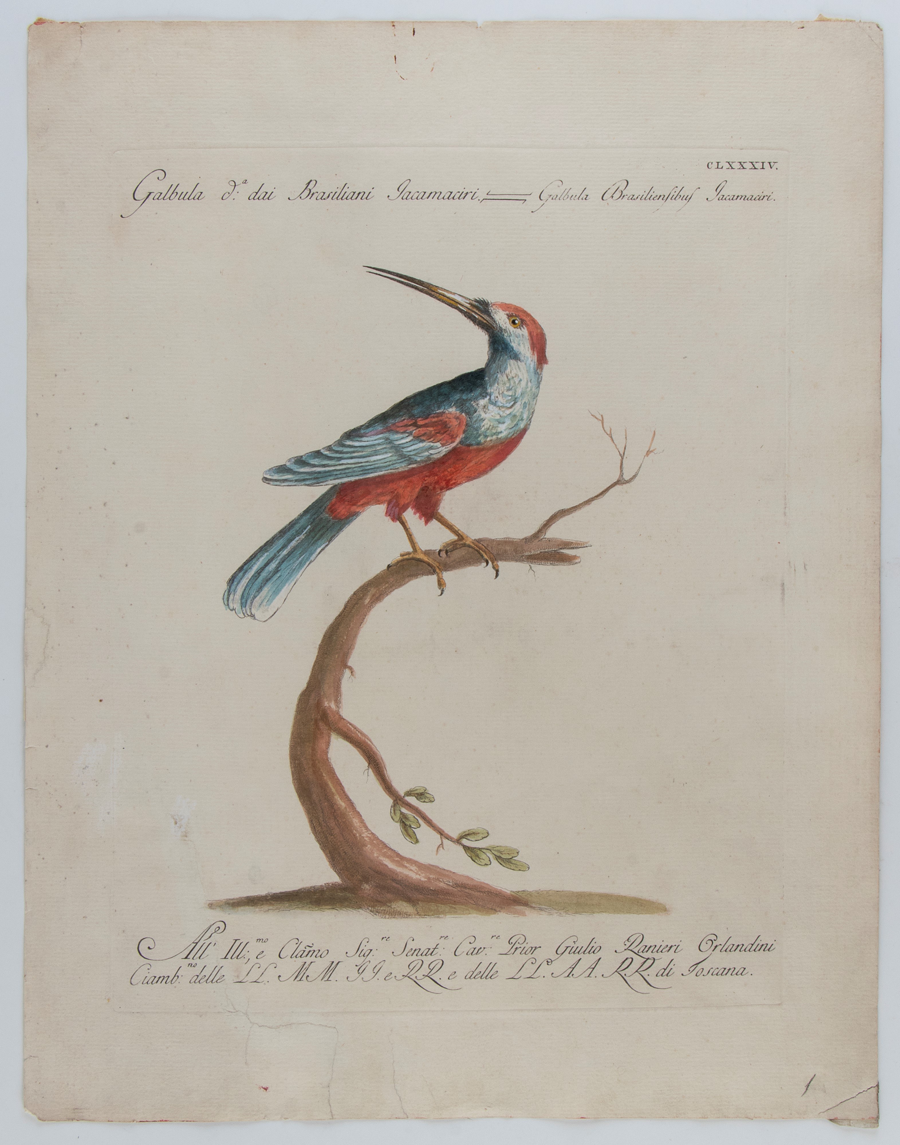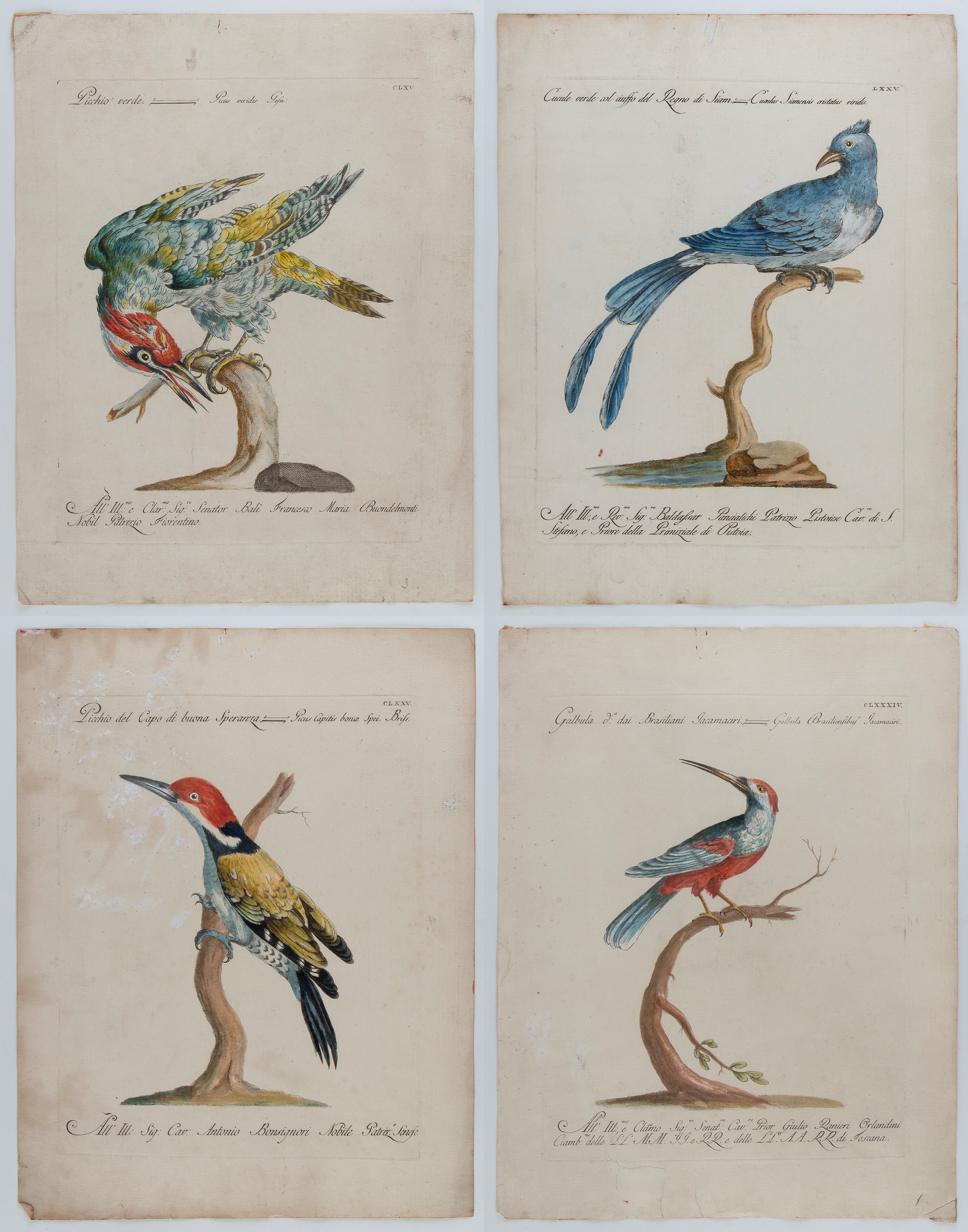 Lot of four plates from "Natural History of Birds" by Saverio Manetti. Etching and engraving, approx. 440 x 345 mm (each sheet).