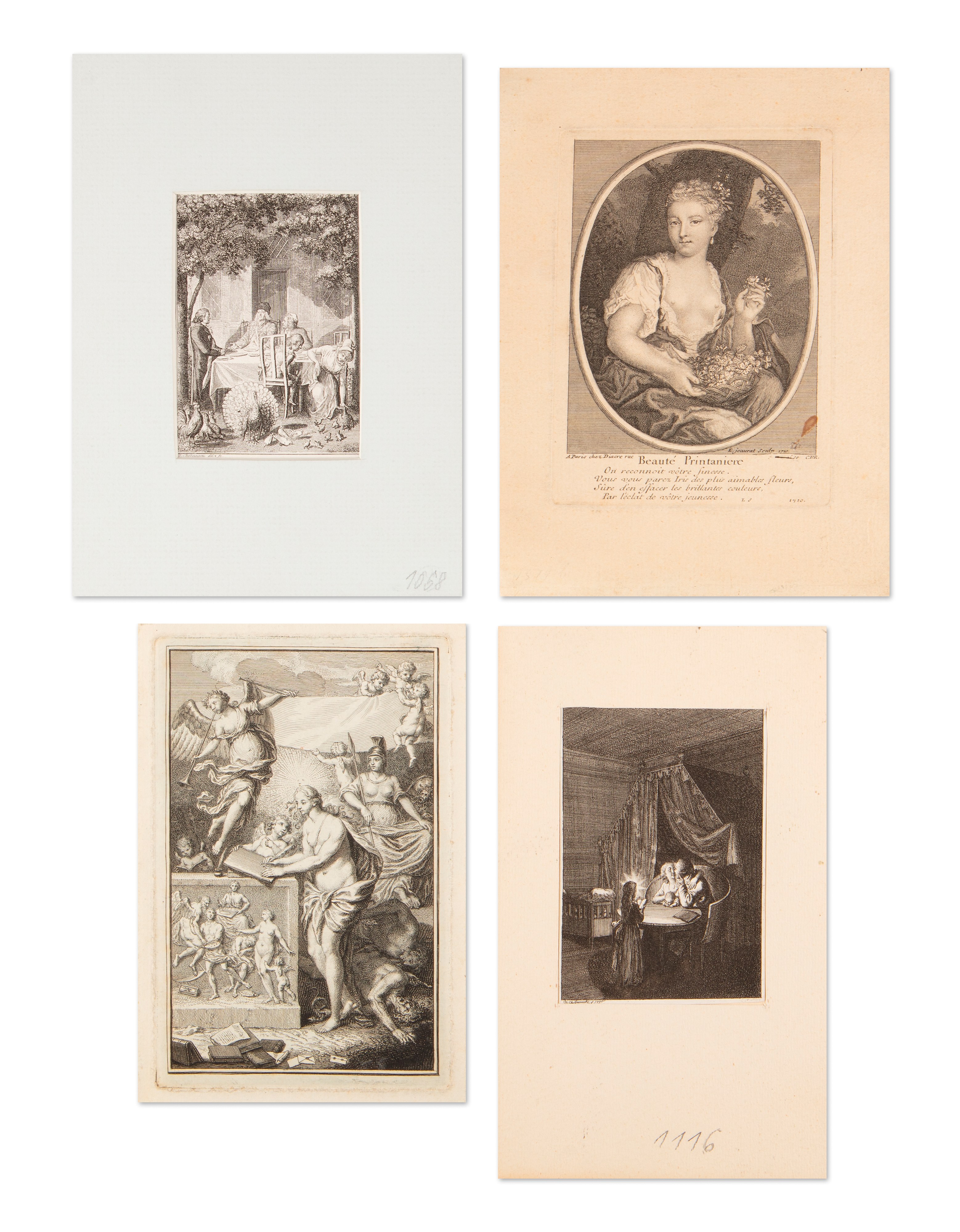 DANIEL CHODOWIECKI, DANIEL CHODOWIECKI, PIETER TANJÉ, ETIENNE JEAURAT (GERMANY / GERMAN, NETHERLANDS / DUTCH, FRANCE / FRENCH) - Bundle of 4 graphic sheets