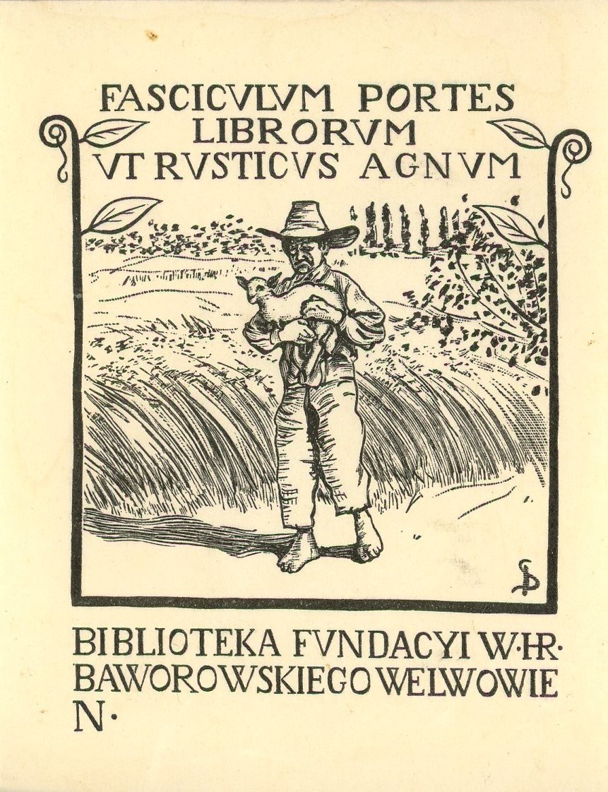 Wym.: 9.5x7cm, cynkotypia sygn. monogramem wiązanym SD. U góry, łac. sentencja. Stan dobry.