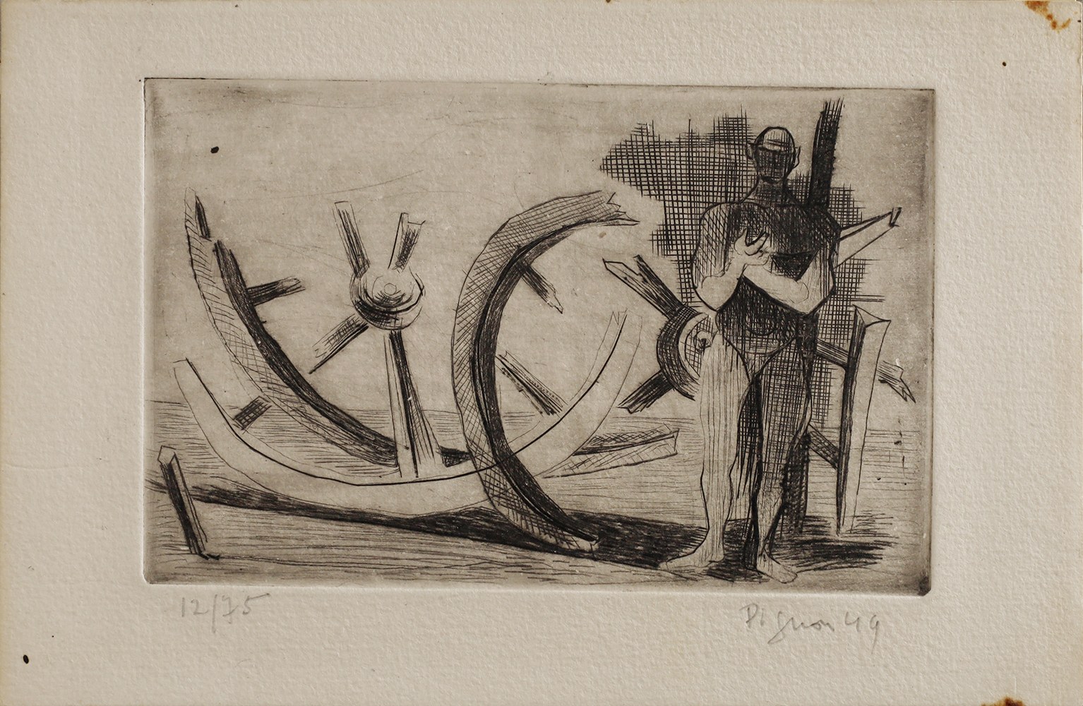 akwaforta, papier, 12 x 19 cm; sygn.p.d.: „Pignon 49” i l.d.: „12/75”. Zabrudzenia dwóch narożników poza tym stan dobry.