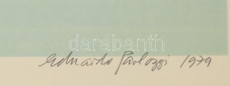 Eduardo Paolozzi (1924-2005): Színelméleti kísérlet, Köln, 1979. Ofszet nyomat, papír, jelzett. Számozott: 135/150. 37x26 cm. Üvegezett fa keretben. / Eduardo Paolozzi (1924-2005): Color-theory experiment, Cologne, 1979. Offset on paper, signed. Numbered: 135/150. 37x26 cm. Framed with glass.