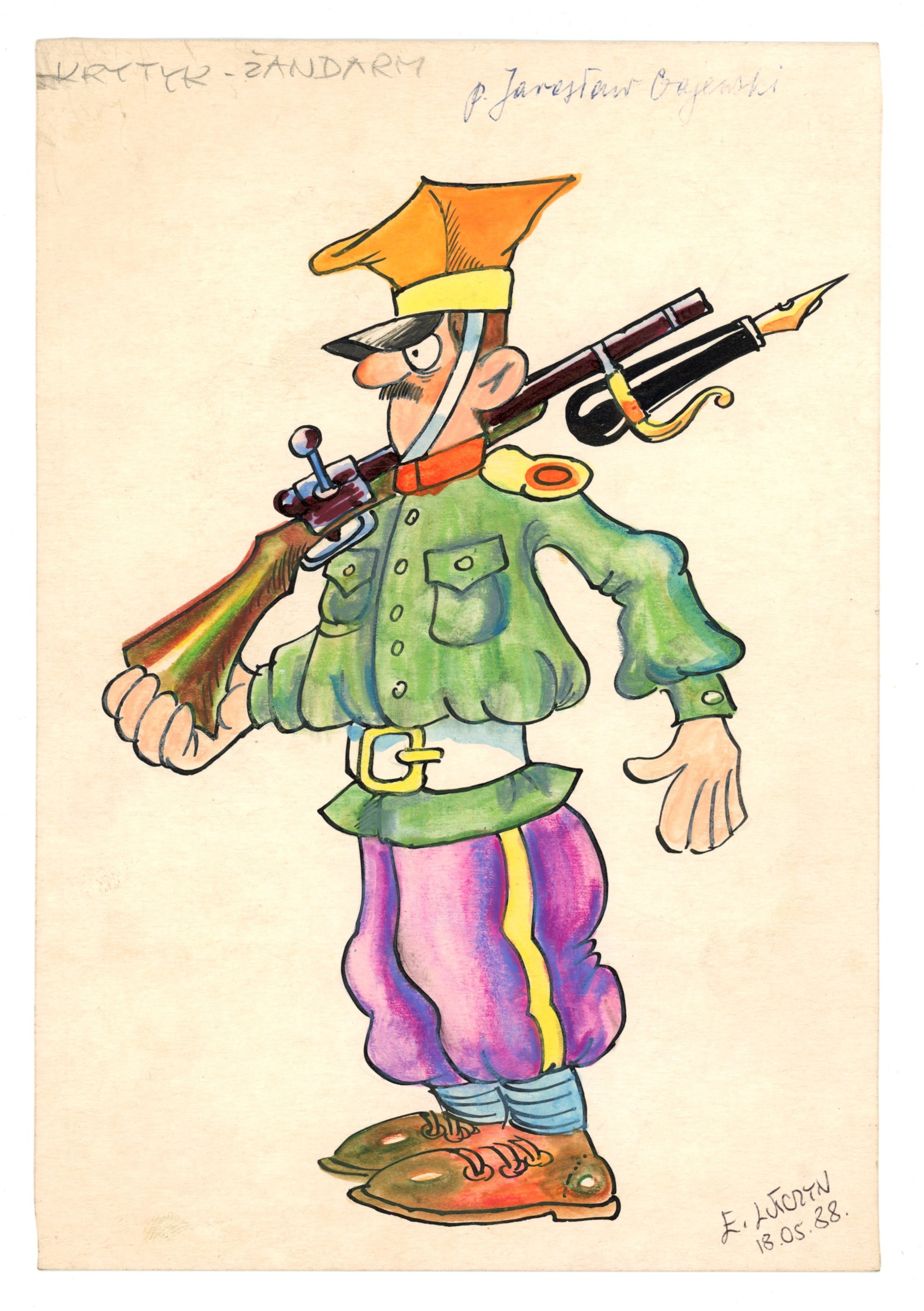Edward LUTCZYN (ur. 1947) - Krytyk-Żandarm, ilustracja satyryczna, 1988 r.