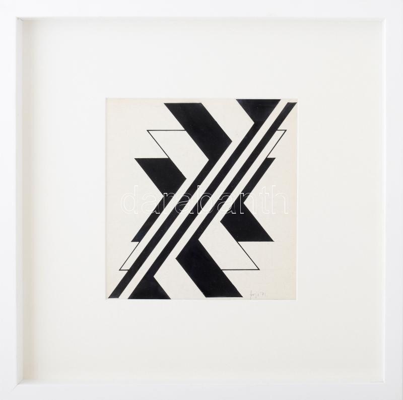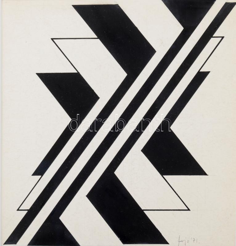 Fajó János (1937-2018): Geometrikus kompozíció, 1971. Tus, papír, jelezve jobbra lent. Üvegezett fakeretben. 21x20 cm ...