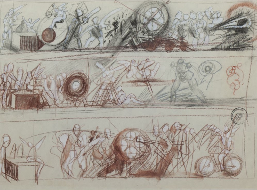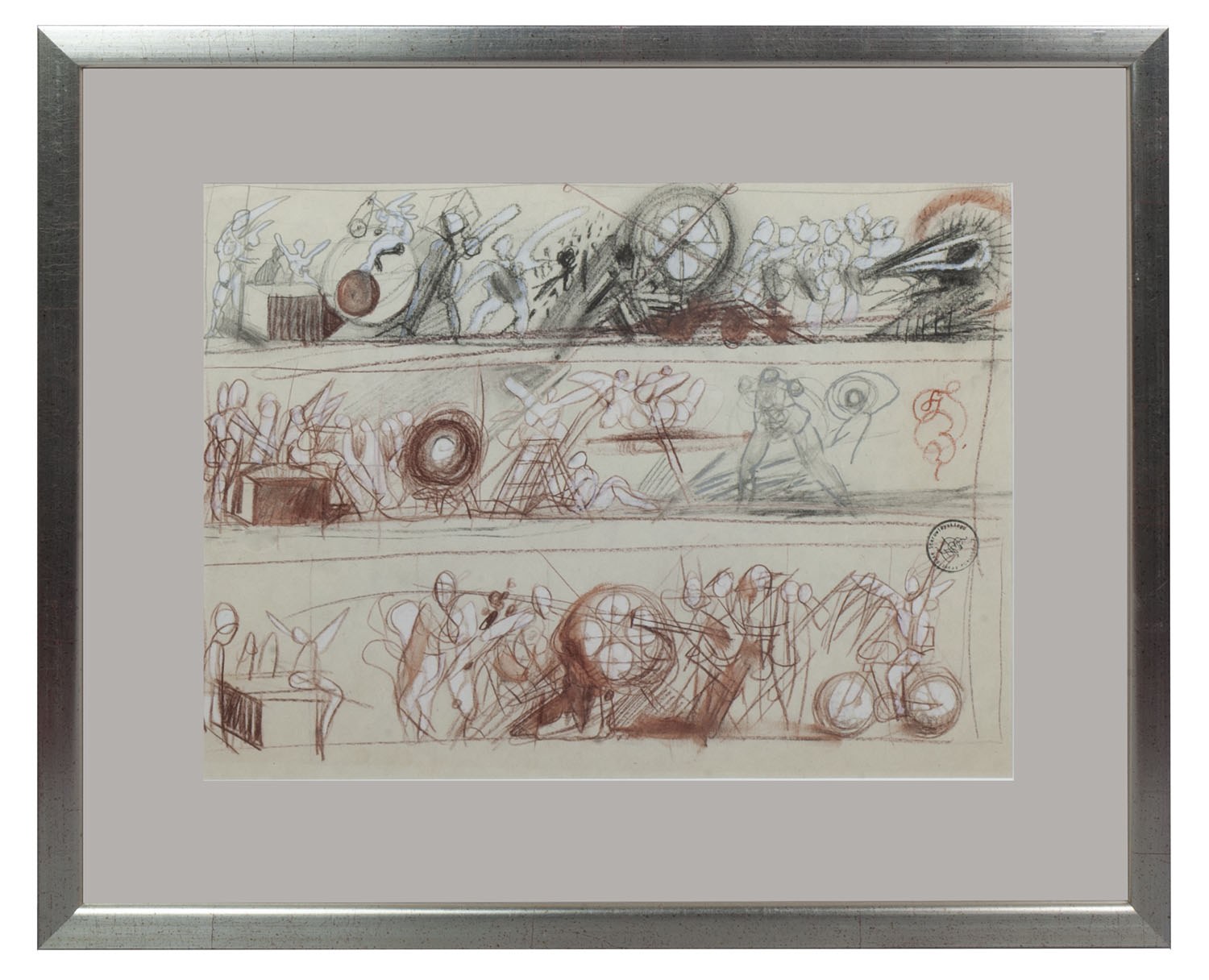 Technika mieszana na papierze; sygnowana monogramem p. śr., pieczęć “z rysunków Franciszka Starowieyskiego”.