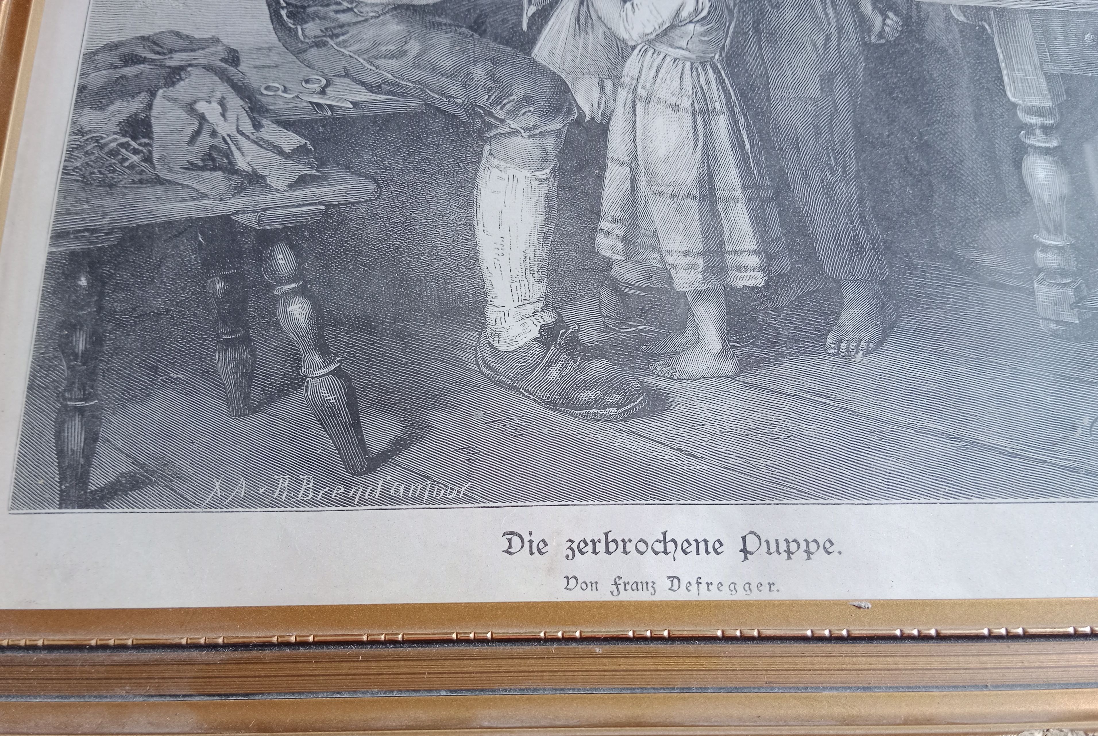 FRANS DEFREGGER, LITOGRAFIA, SCENA RODZAJOWA W DOMU, MIESZCZANIE