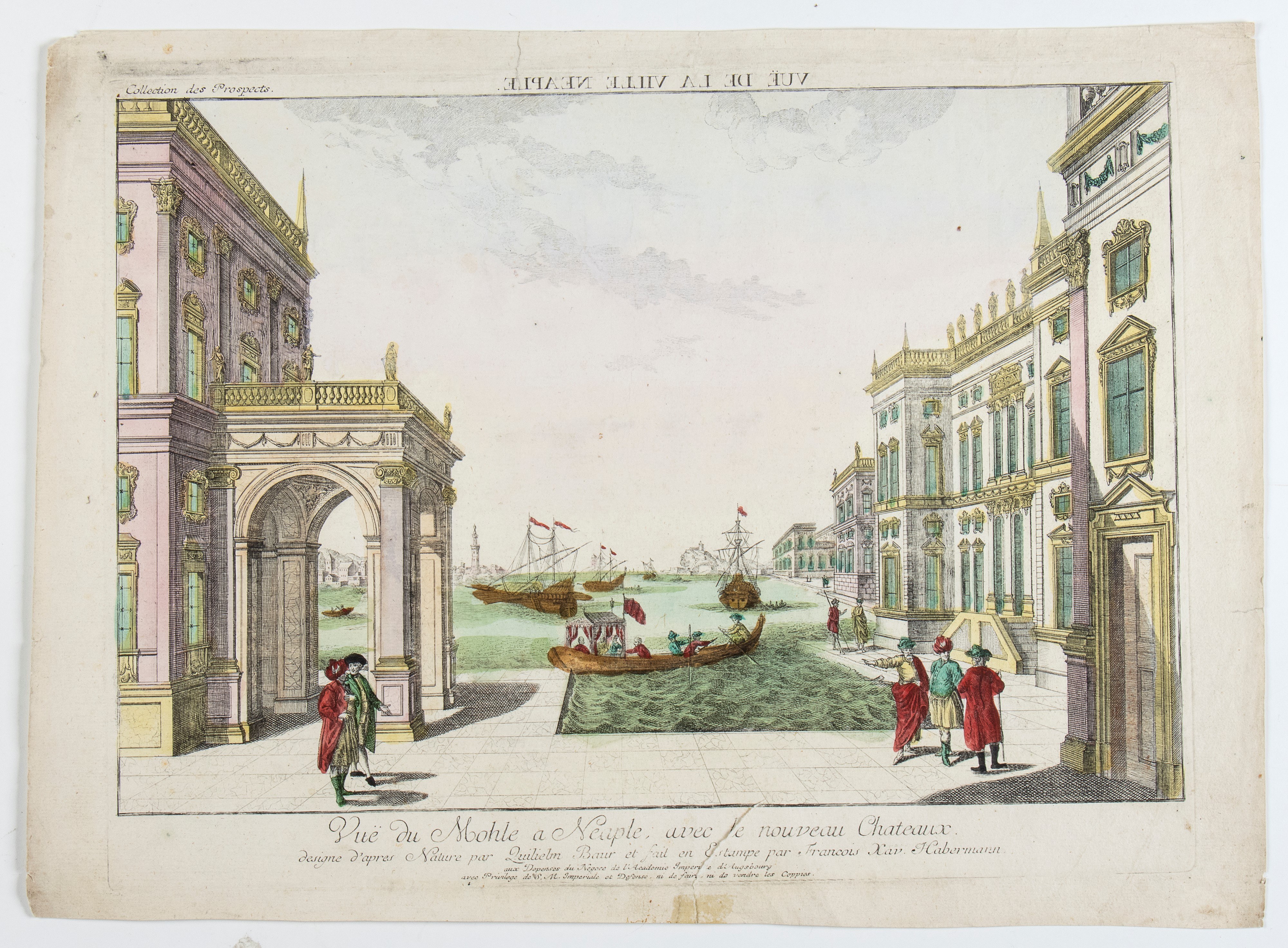 Optical view of the port of Naples, after Johann Wilhelm Baur. Etching, 322 x 428 mm (plate), 355 x 485 mm (sheet).