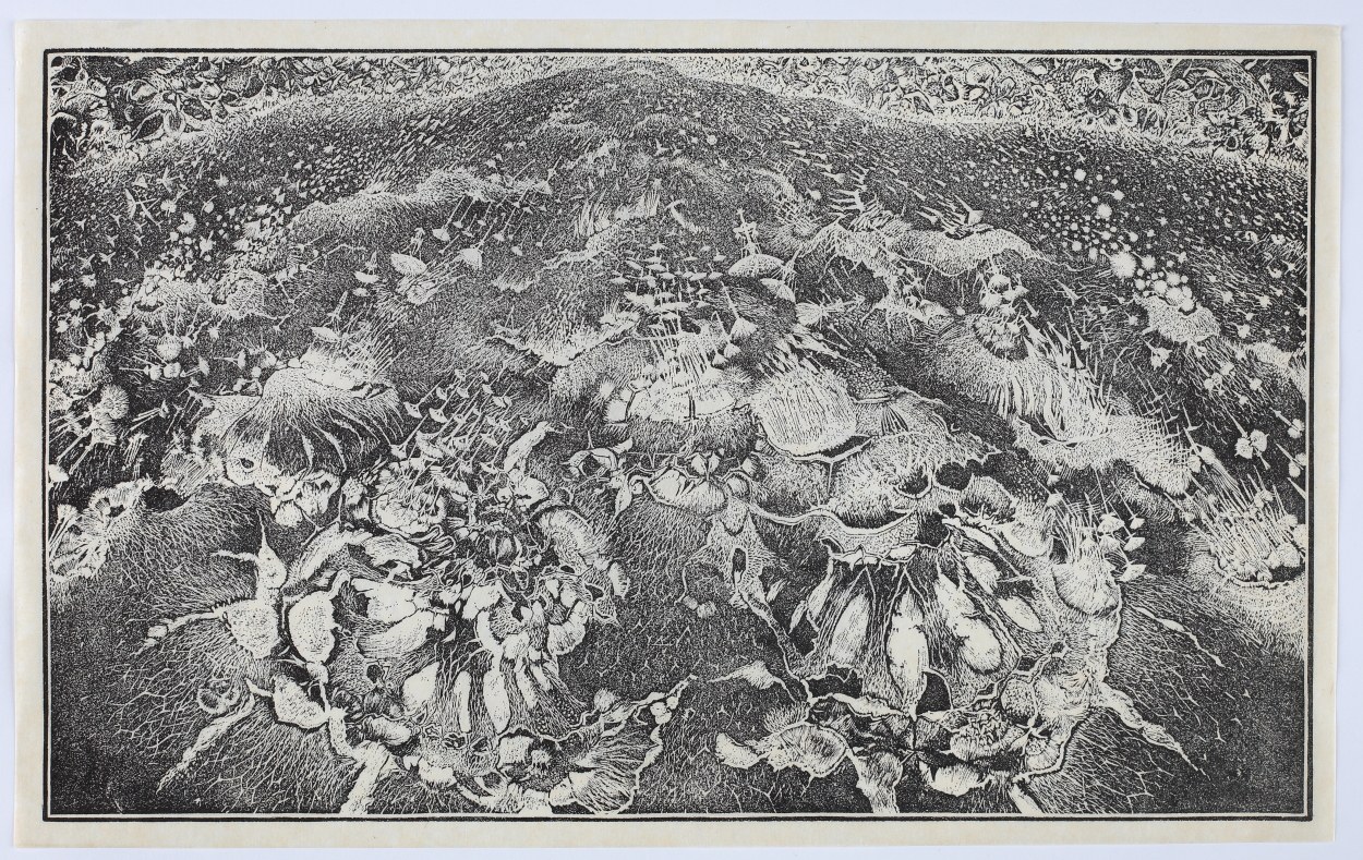 Linoryt, papier; 19,9 x 33 cm (odcisk płyty), na ark. 36 x 22,5 cm. Grafika niesygnowana.