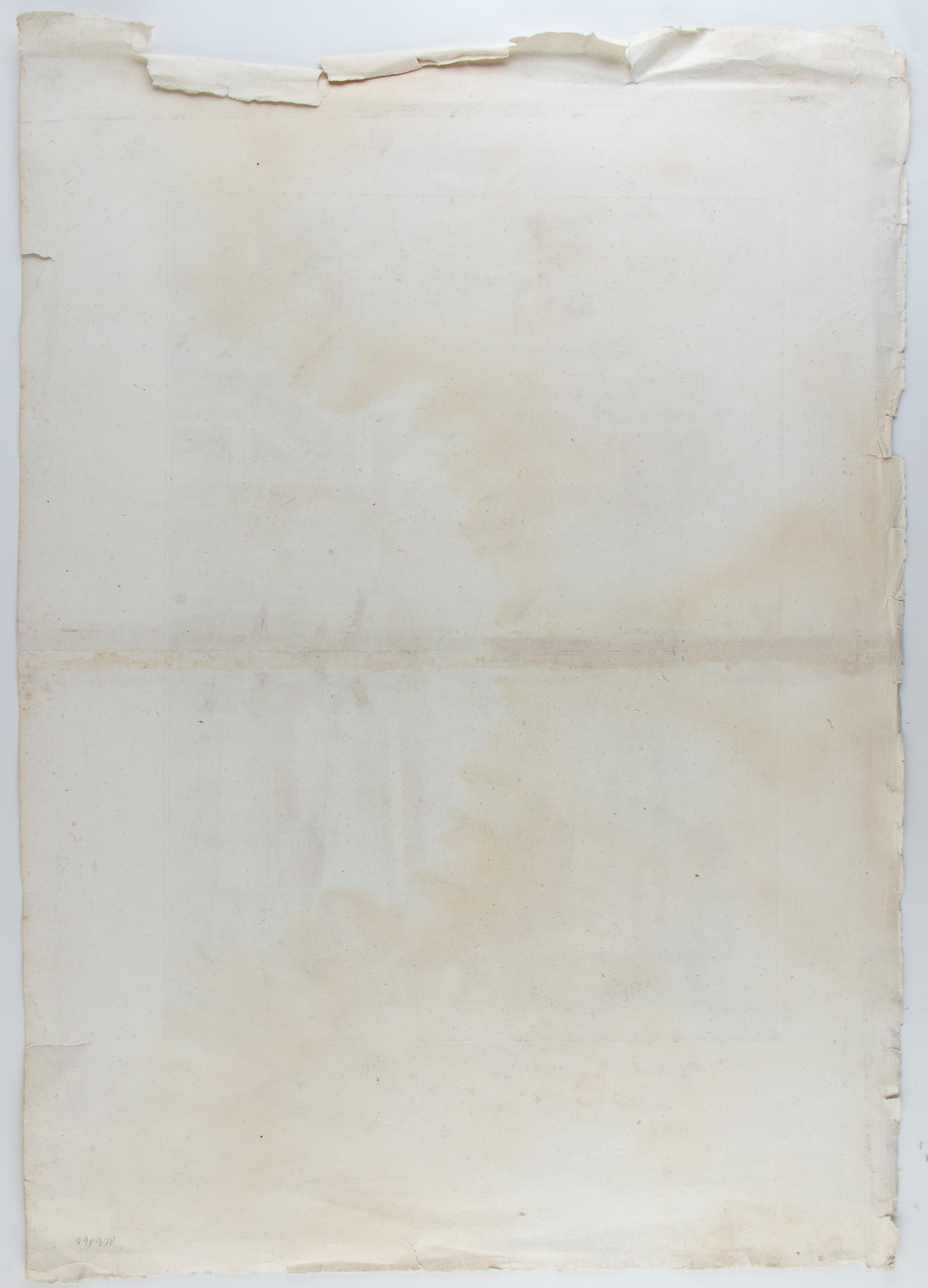 Clear and well-inked impression on two sheets of laid paper joined together, with double watermark ("Bracciano" and a countermark), sheet in excellent condition except for some wear and tears along the edges.