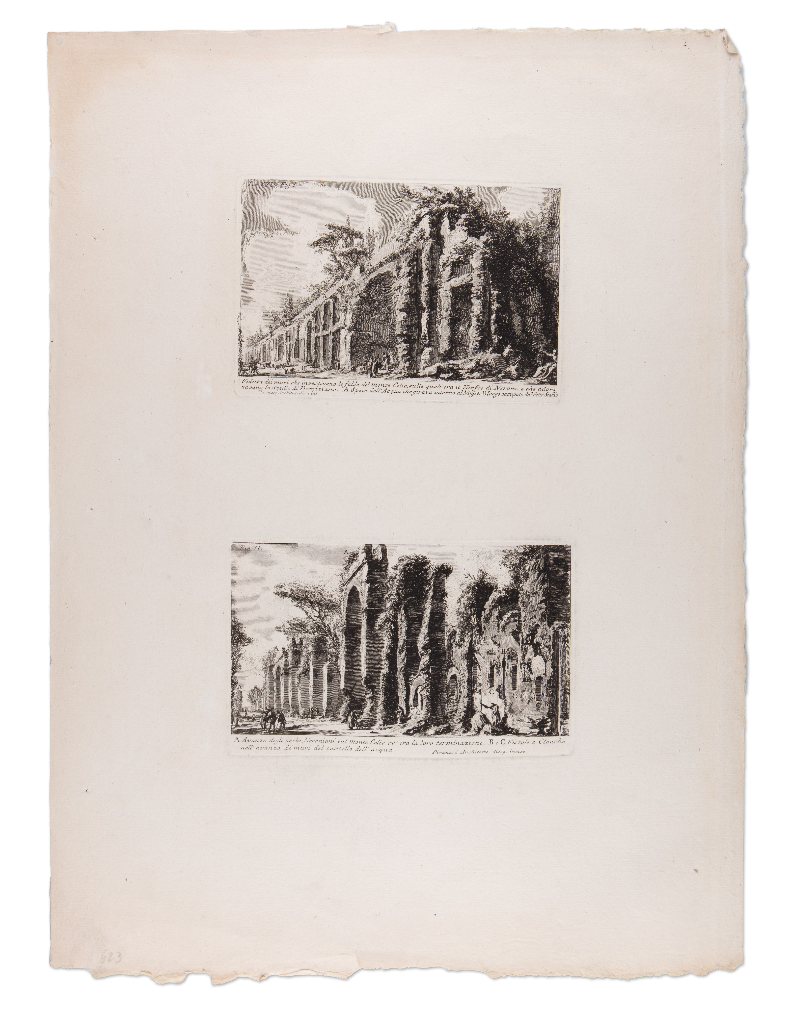 GIOVANNI BATTISTA PIRANESI (ITALY / ITALIAN 1720 - 1778) - "Veduta dei muri che investivano le falde del Monte Celio" and "Avanzo del Tempio della Speranza Vecchia"