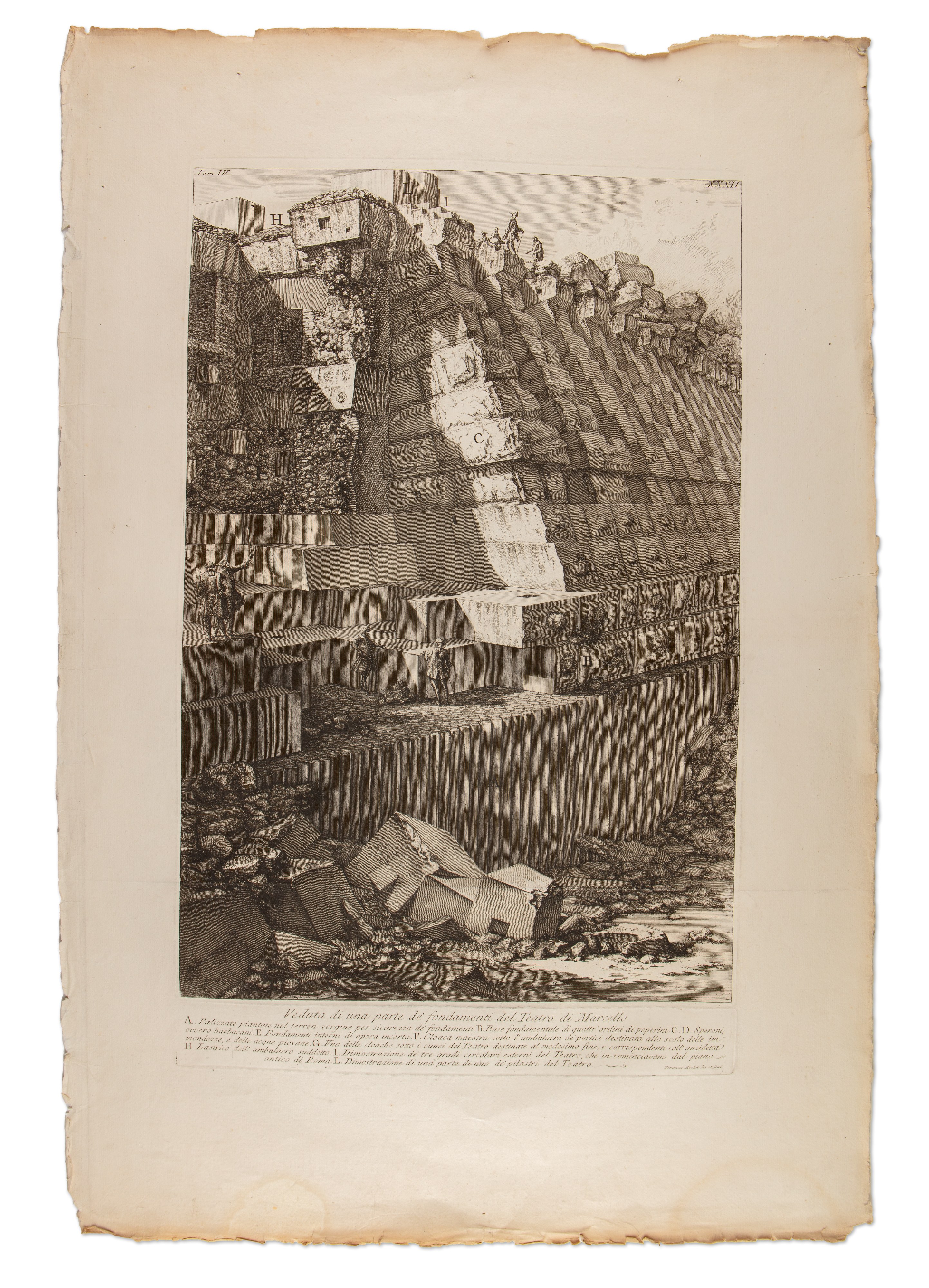 GIOVANNI BATTISTA PIRANESI (ITALY / ITALIAN 1720 - 1778) - Veduta di una parte de' fondamenti del Teatro di Marcello (large sheet)