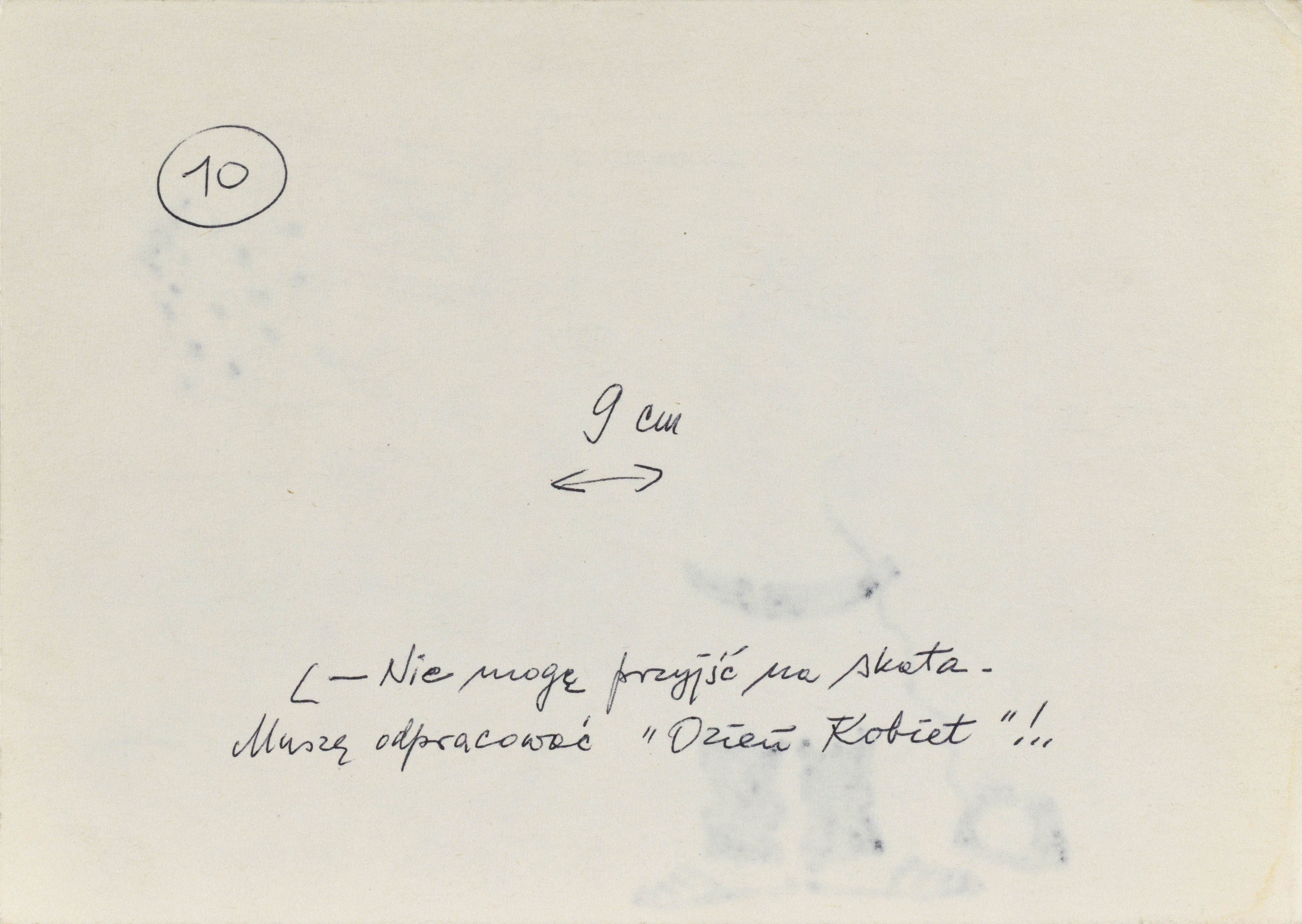 Opisany autorsko na odwrocie: L - Nie mogę przyjść na skata. Muszę odpracować "Dzień Kobiet"!..