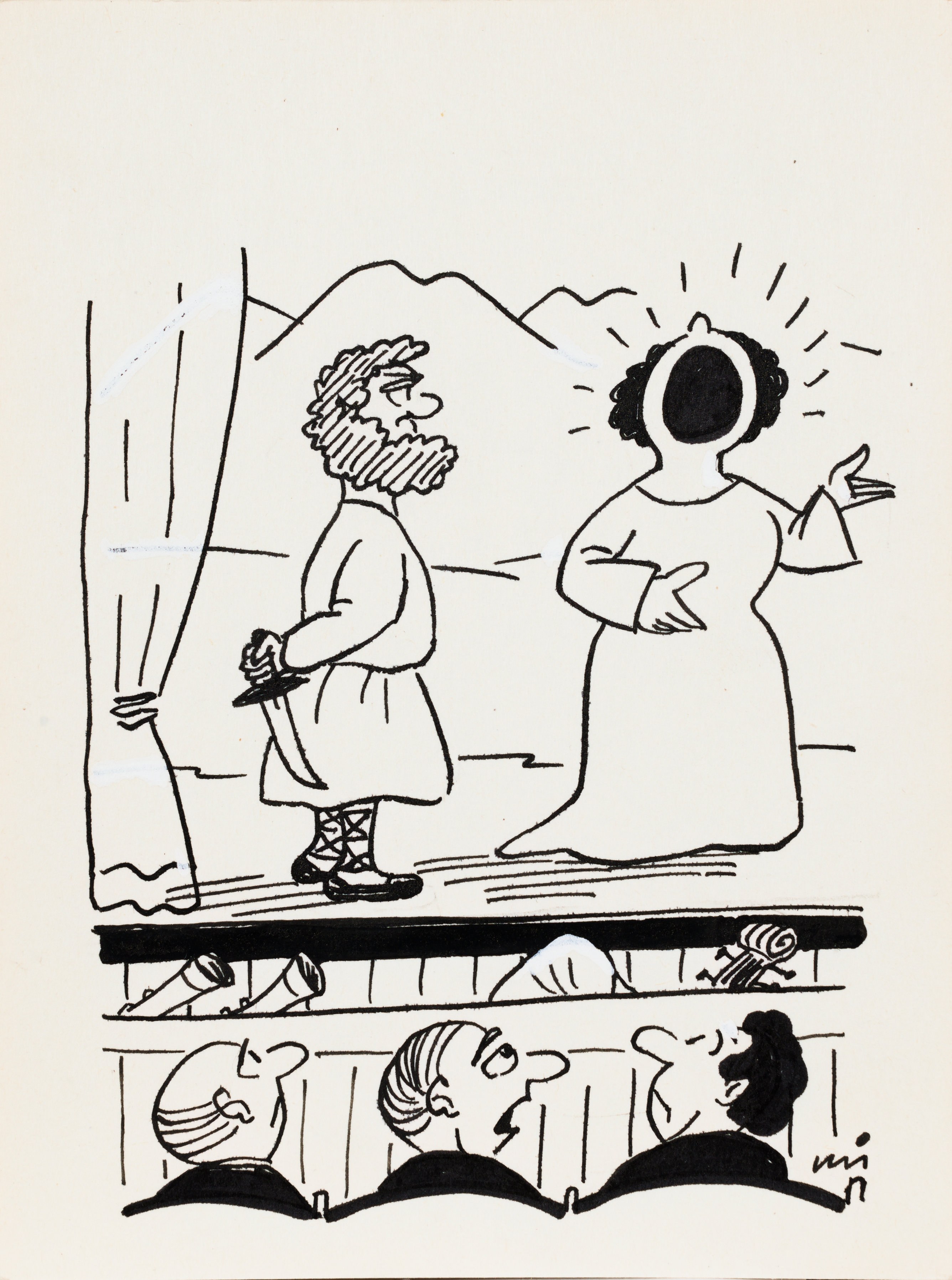 tusz, biała farba, papier; 17,8 x 13 cm;