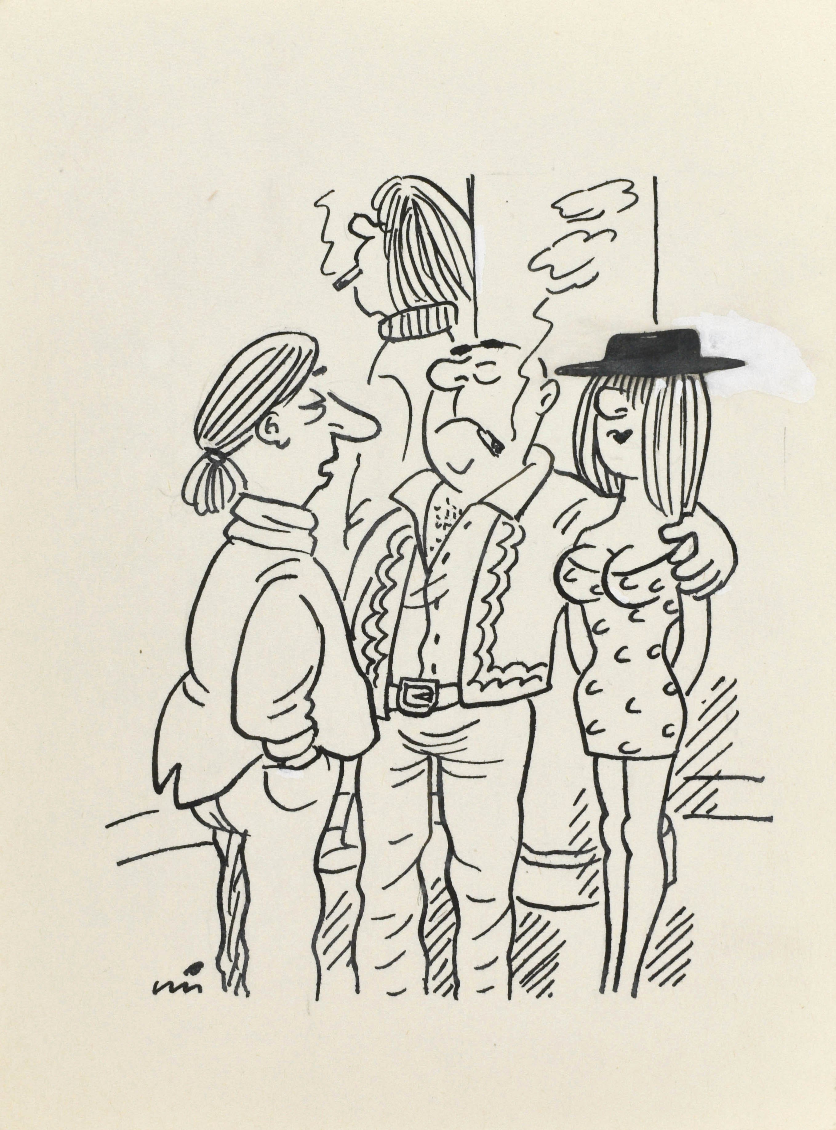 tusz, biała farba, papier; 17,8 x 13,1 cm;