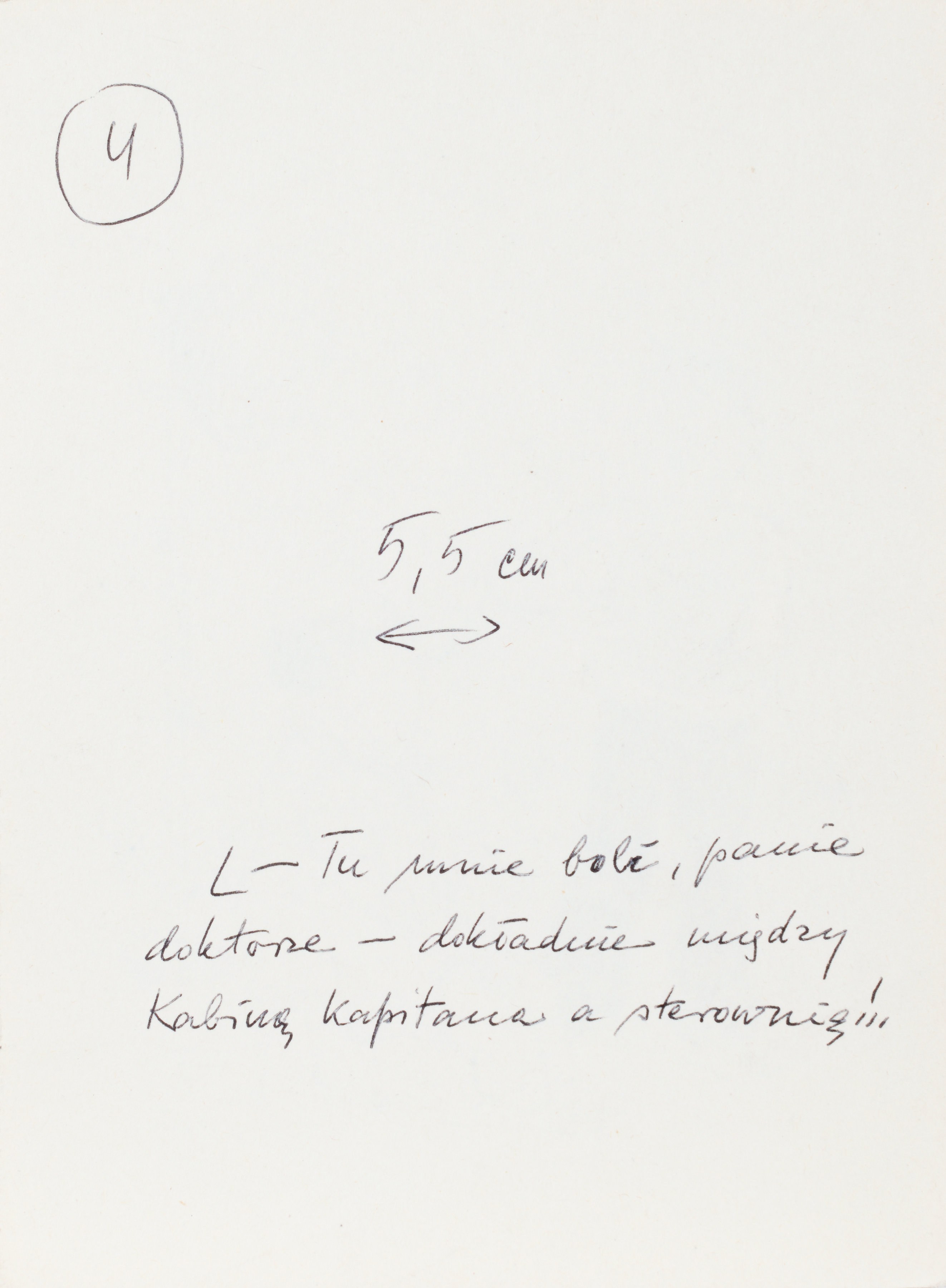 Opisany autorsko na odwrocie: L - Tu mnie boli, panie doktorze - dokładnie między Kabiną Kapitana a sterownią!..