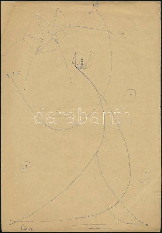 Gyarmathy Tihamér (1915-2005): Táncoló női akt (cím nélkül), 1948. Tus, papír, jelzett. Kisebb lapszéli szakadással...