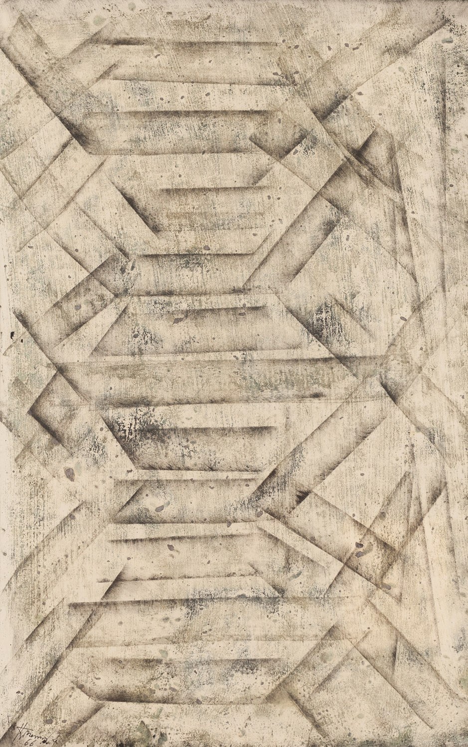 datowany i opisany na odwrociu: 'z cyklu | "Struktury krystaliczne" | (nikiel) VIII/65 | 58 X 36'