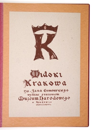 GUMOWSKI Jan (1883-1946) - Widoki Krakowa. Kraków 1926. Muz. Narodowe. folio, k. [13]. opr. luksusowa pł. zdob. z epoki, obcięcie złoc.