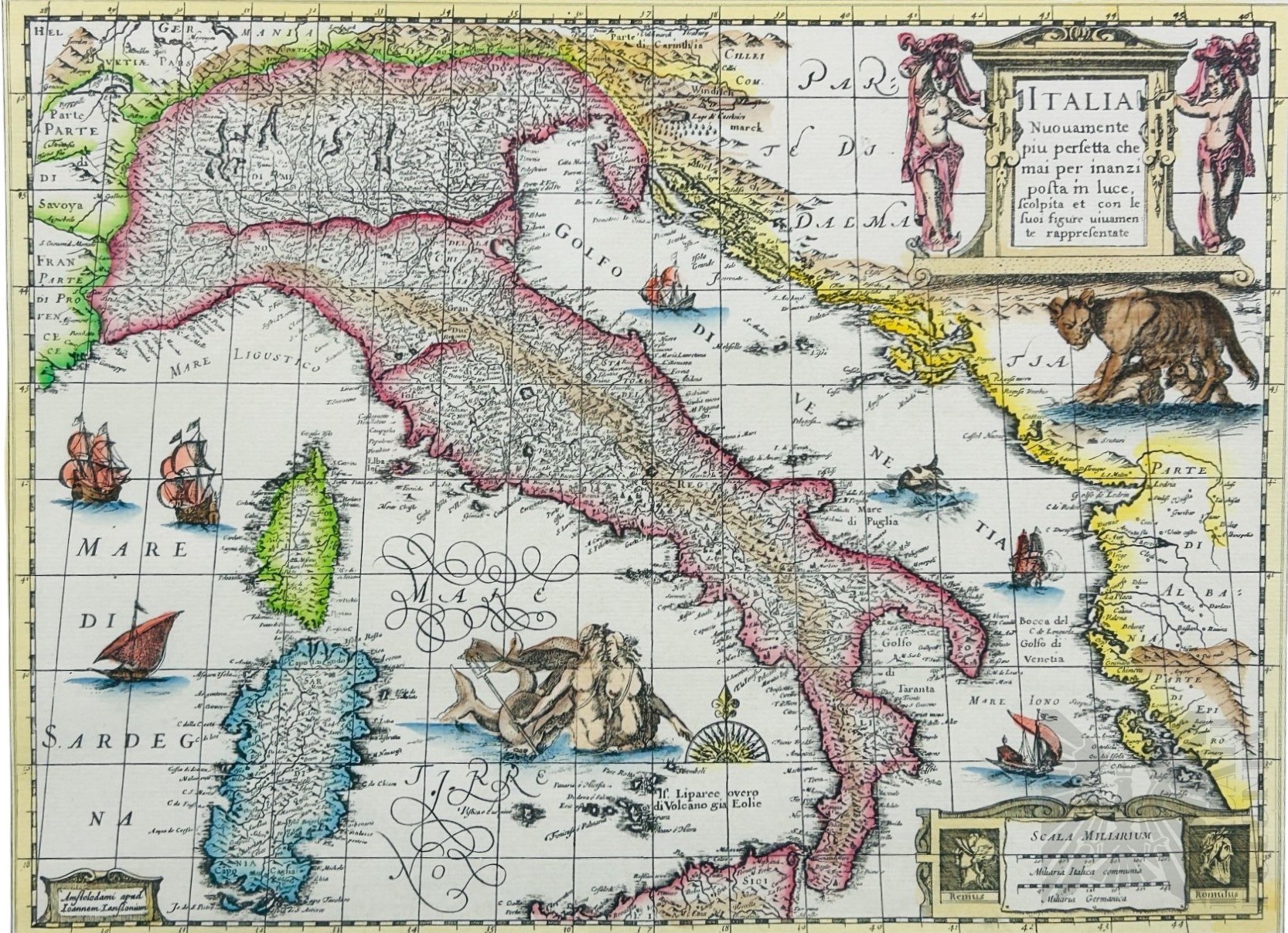 Jan Janssonius (1588-1664) - Obraz Mapa Włoch (Italia Nuovamente Piu Perfetta…), 1635 r., Reprodukcja Drukowana