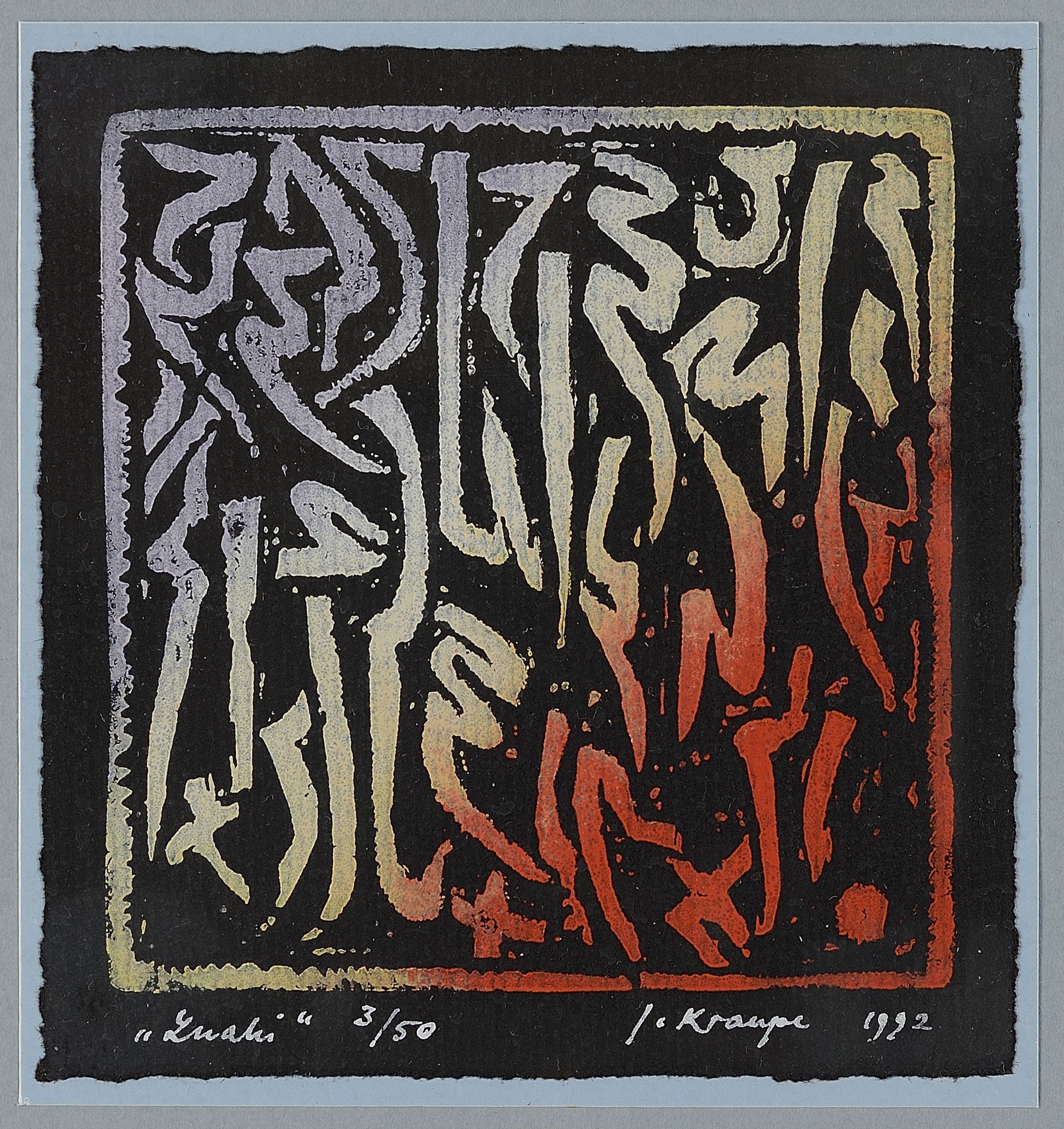 Linoryt barwny, ed.: "3/50", papier, 11,5 x 11 cm, linoryt naklejony na papier,