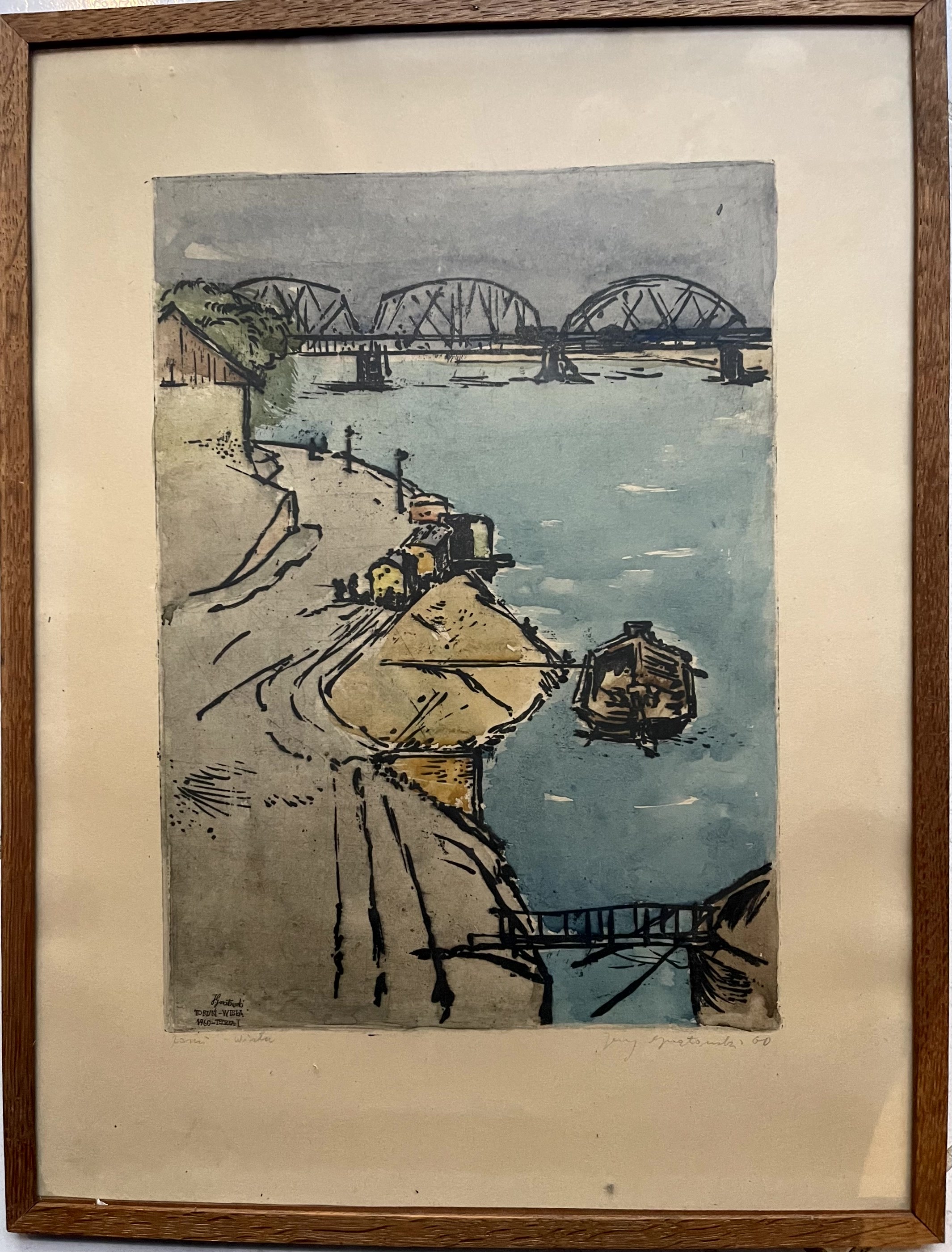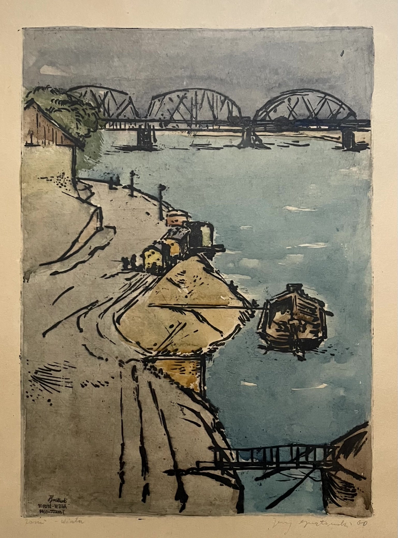 litografia barwna, papier, wym. 31 x 22, 5 cm (zadruk), sygn l. d. "Toruń-Wisła" i p. d. "Jerzy Gnatowski 60" ołówkiem oraz l. d. na płycie " J. Gnatowski TORUŃ_WISŁA 1960 - TEKA I"