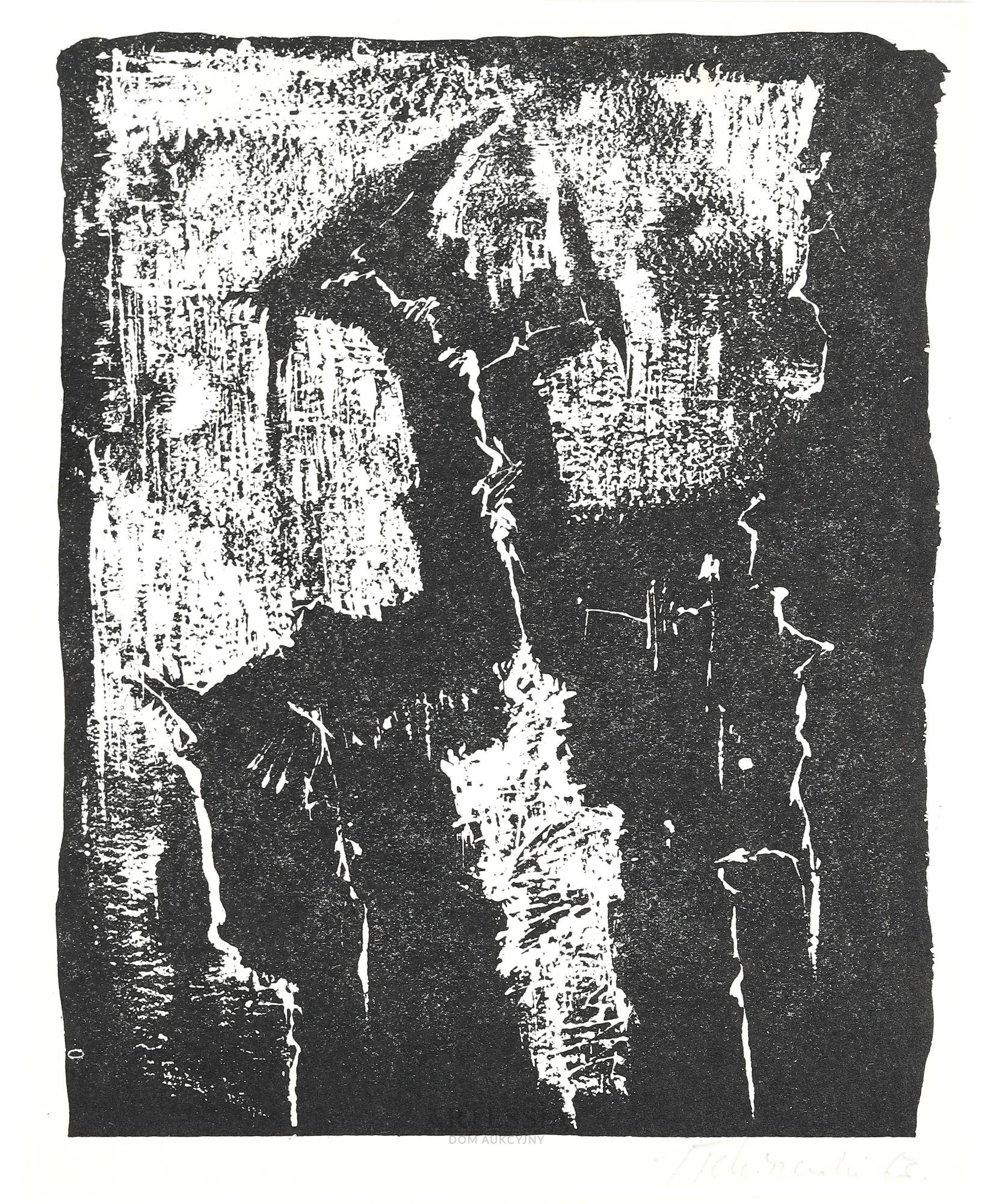 praca wykonana do teki "Konfrontacje" 1963 wydanej przez galerię "Krzywe Koło", wydanej w nakładzie zaledwie 250 sztuk i zawierającej prace najciekawszych artystów współpracujących z galerią