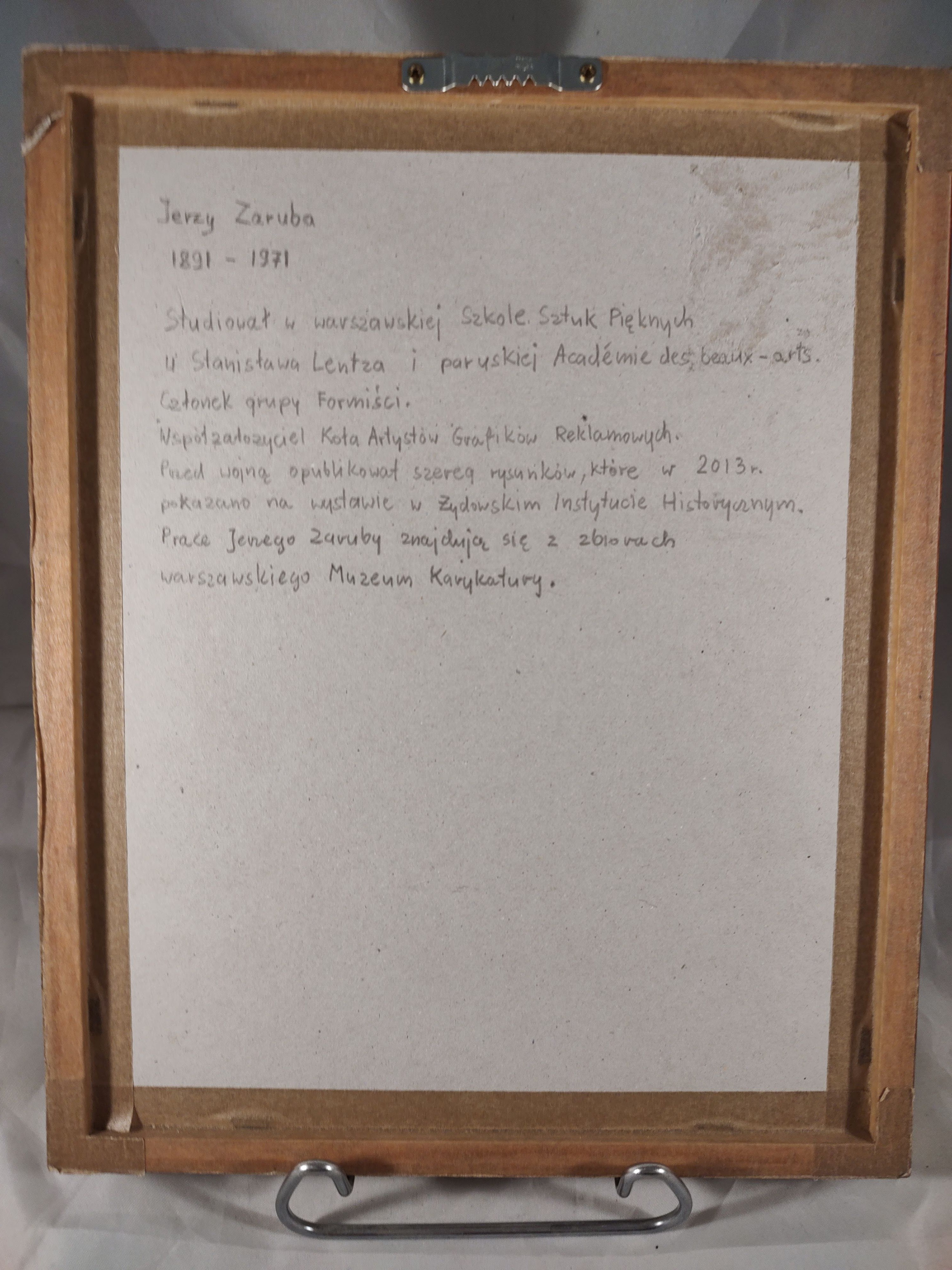 Tusz lawowany na papierze. Wym: w świetle p/p 18 x 11 cm. Na odwrocie opis ołówkiem: Jerzy Zaruba...