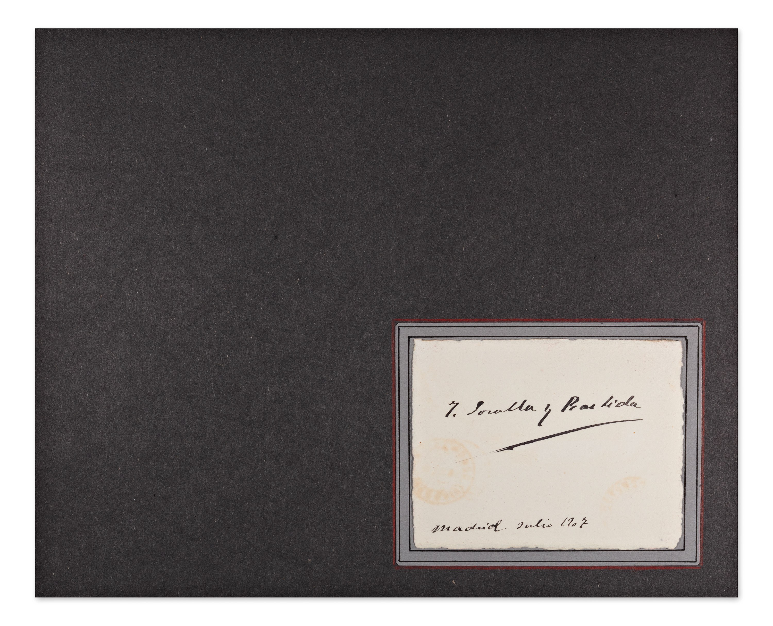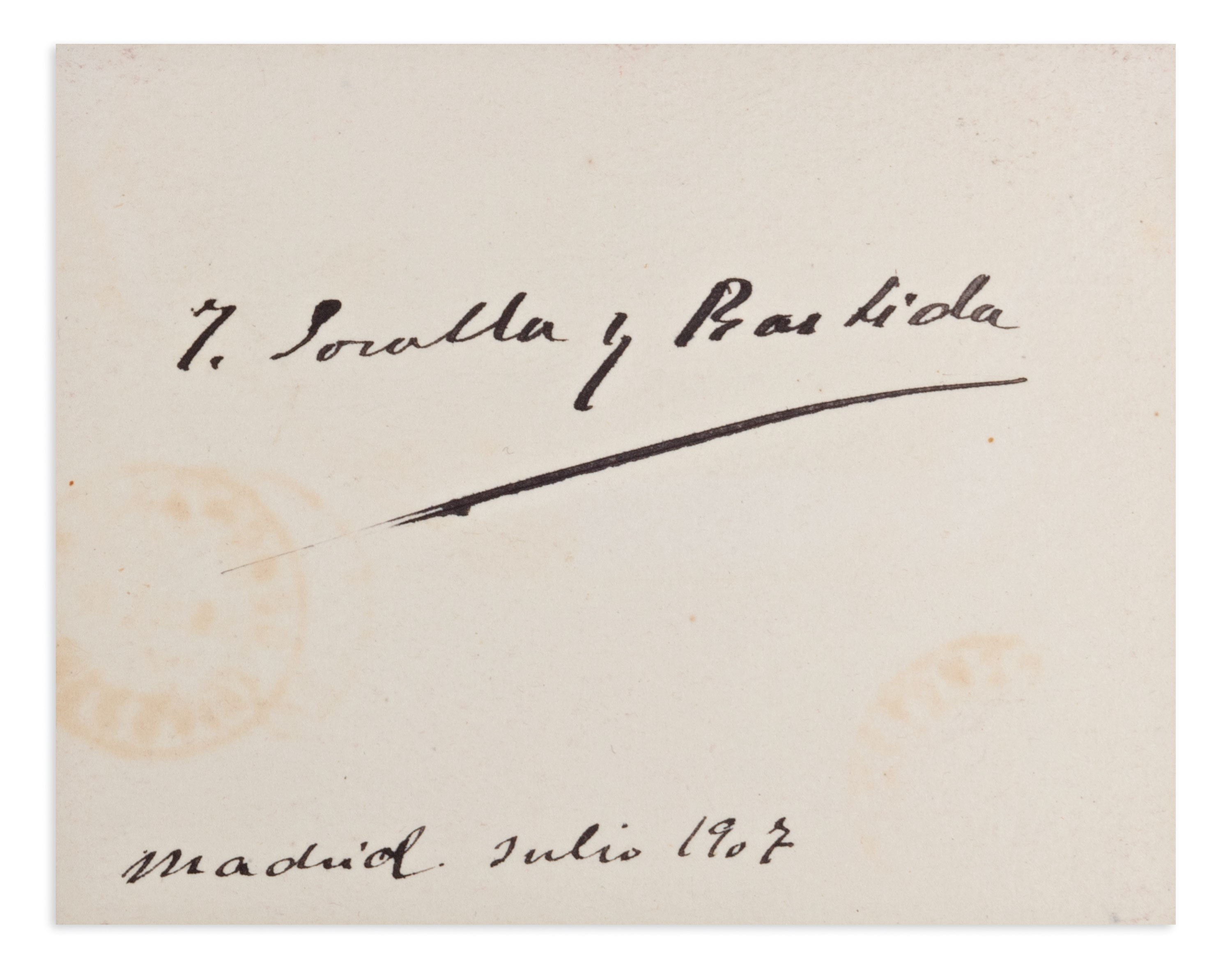 Handwritten signature of the famous Spanish painter Joaquín Sorolla y Bastida, dated Madrid, July 1907. The elegant signature is accompanied by the characteristic underline, which was typical of Sorolla.Sorolla is considered one of the most important Impressionist and Luminist painters of the late 19th and early 20th centuries. His works are distinguished by masterful captures of light, color harmony, and exceptional brush technique. He is best known for his scenes of life on Spanish beaches, portraits, and monumental historical paintings, including the "Vision of Spain" series created for the Hispanic Society of America in New York.