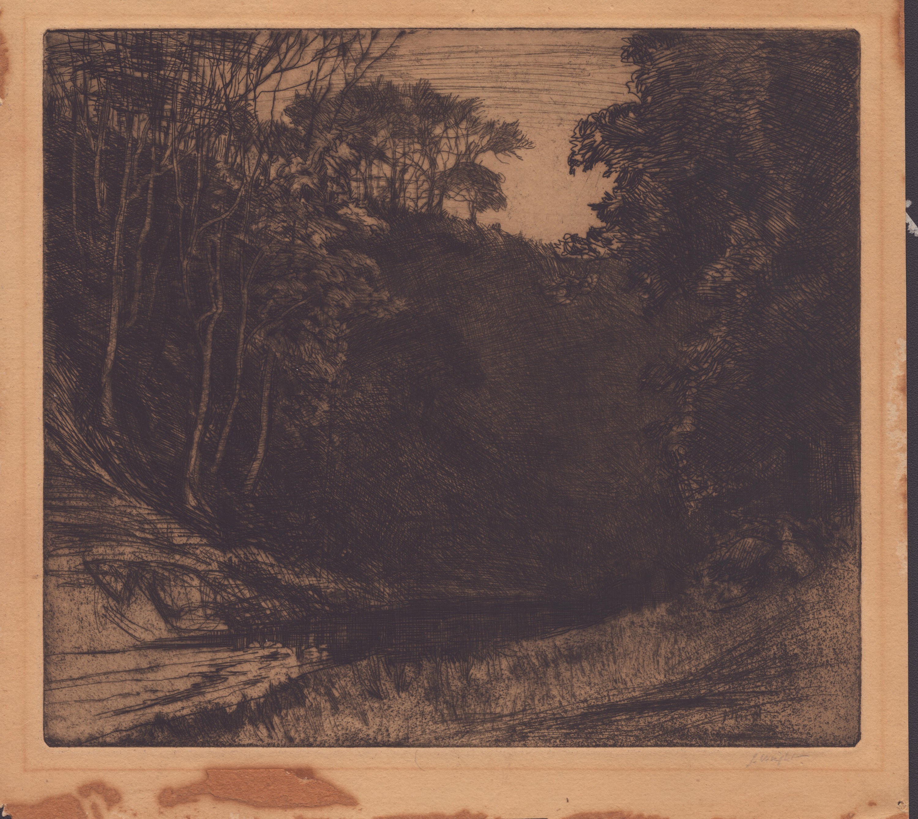 Etching and drypoint, 187 x 212 mm (plate), 205 x 225 mm (sheet). Signed in plate and in pencil lower right). Beautiful, fresh and well inked proof. Uniformly browned paper, with some paper residue on the reverse and on the lower margin.
