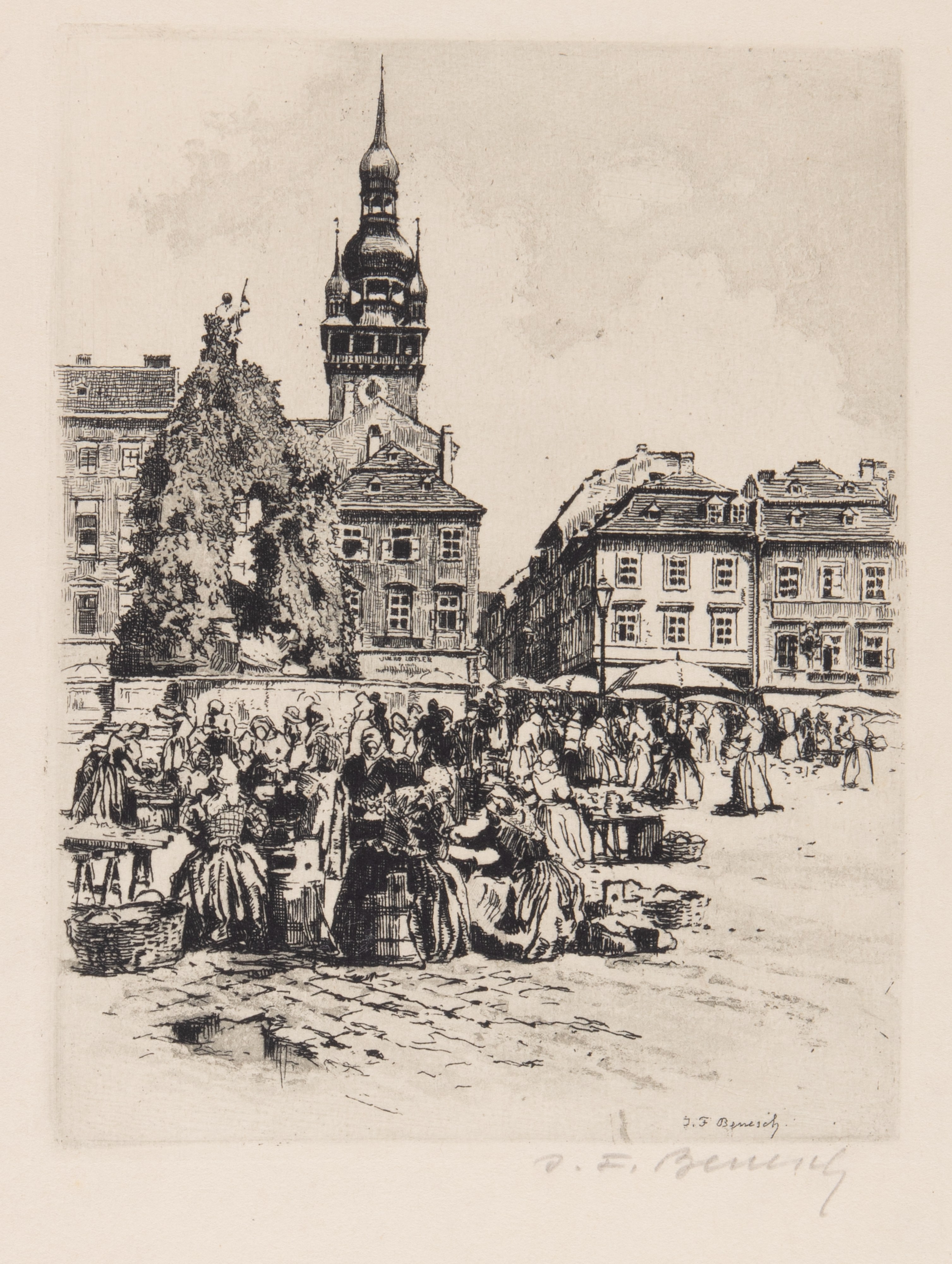 JOSEF FERDINAND BENESCH (CZECH / BOHEMIAN 1875 - 1954) - Cabbage market in Brno