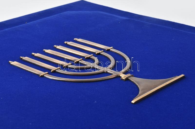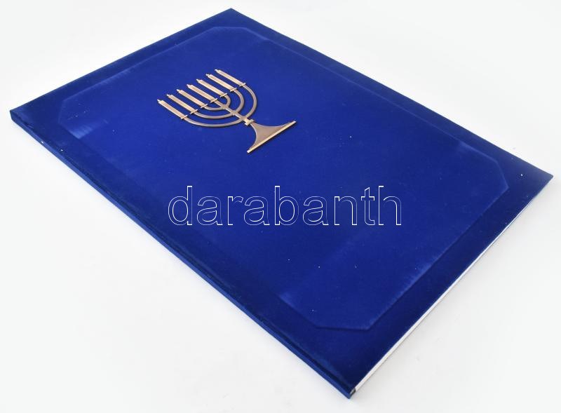 Kass János (1927-2010): Zsidó ünnepek mappa. 14 db rézkarc, papír, mindegyik jelzett és számozott (75/100). Eredeti, kiadói plüss borítású mappában, mappán fém menórával. Komplett, hiánytalan judaika és művészeti ritkaság!