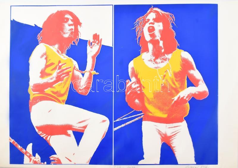 Kelemen Károly (1948): Mick Jagger, 1976. Szitanyomat, papír. Jelezve jobbra lent. Számozott (7/10). 49x64 cm. Mindössze 10 példányban készült, rendkívül ritka pop art gyűjtői darab! / Kelemen Károly (1948): Mick Jagger, 1976. Screenprint on paper. Signed lower right. Numbered (7/10). 49x64 cm. Very rare pop art collector's item!