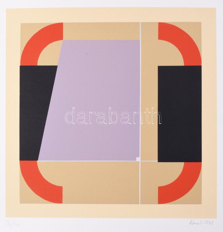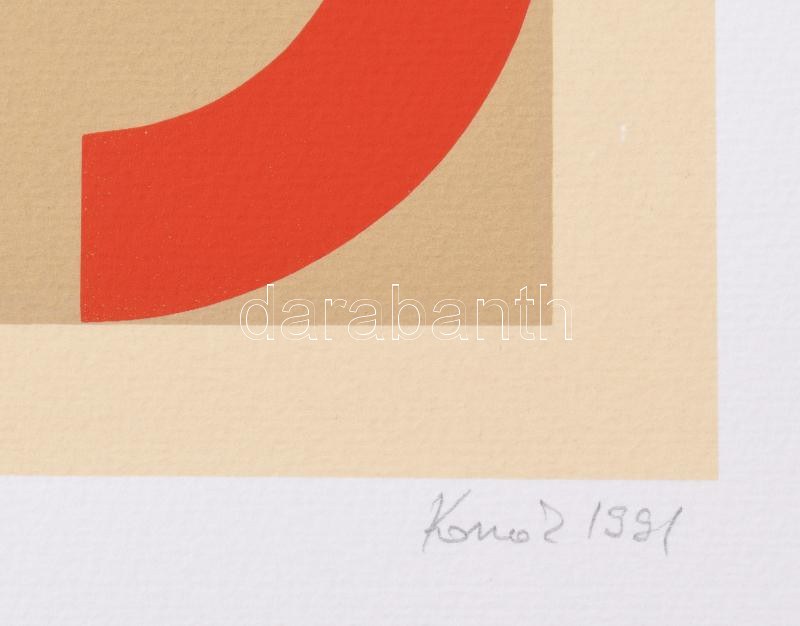 Konok Tamás (1930-2020): Geometrikus kompozíció, 1991. Szitanyomat, papír, jelzett, számozott (26/40). 28×28 cm ...
