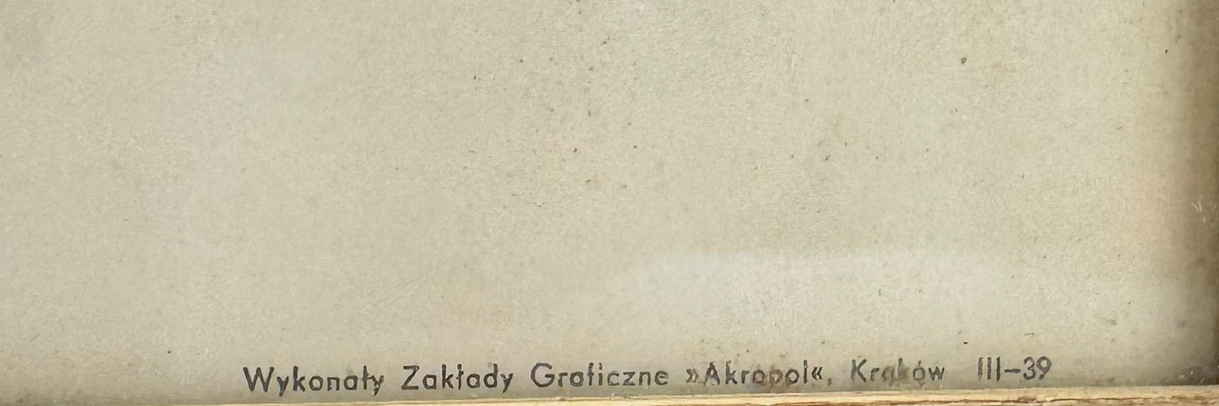 Stan zachowania dobry: niewielkie zabrudzenia, pofalowanie reprodukcji w środkowo dolnej części.