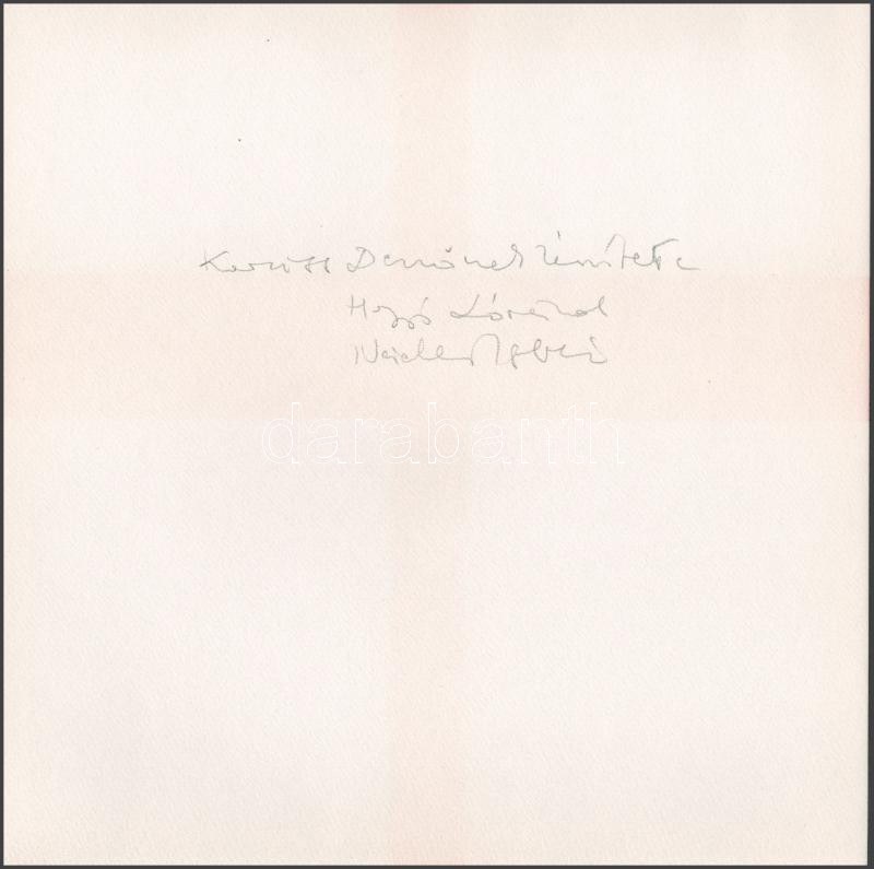 Korniss Dezső (1908-1984): Kereszt, 1981. Szitanyomat, papír, jelzés nélkül. Pesti Műhely kiadásában és nyomásában megjelent mappából. Hátoldalán "Korniss Dezsőnek készítette" felirattal valamint Nádler István (1938-) és Hegyi Lóránd (1954-) művészettörténész, Korniss Dezső monográfusa, a mappa borítóján lévő tanulmány szerzőjének autográf aláírásáival! 30×30 cm