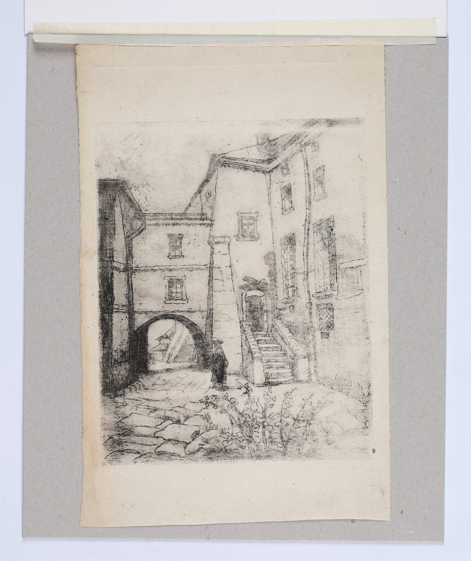 Miękki werniks. Wym. odb. 25 x 19,5 cm, arkusza 34,5 x 22,5 cm. Grafika niesygn.