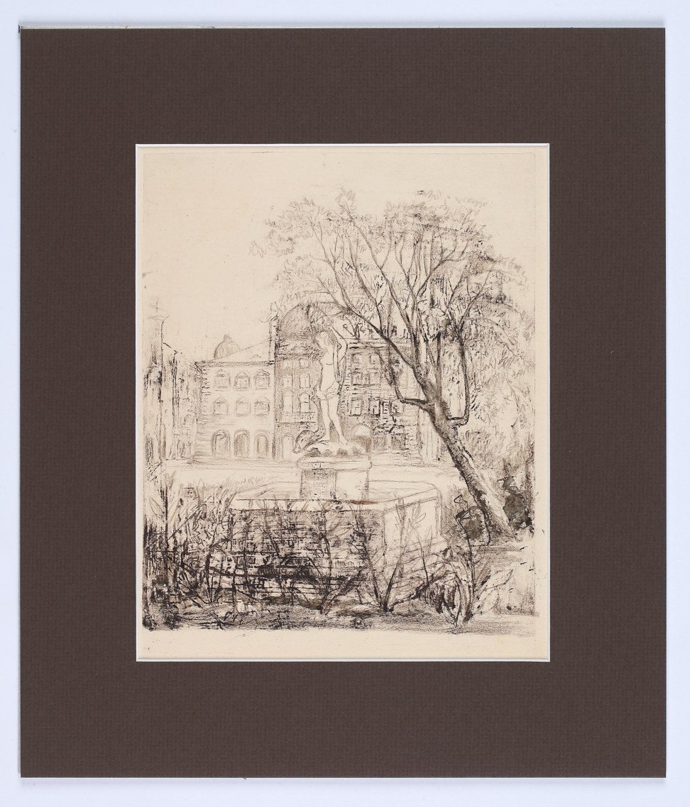 Podklejenie górnego marg. do passe-partout. Drobne zabrudzenia grafiki, zagięcie lewego rogu.