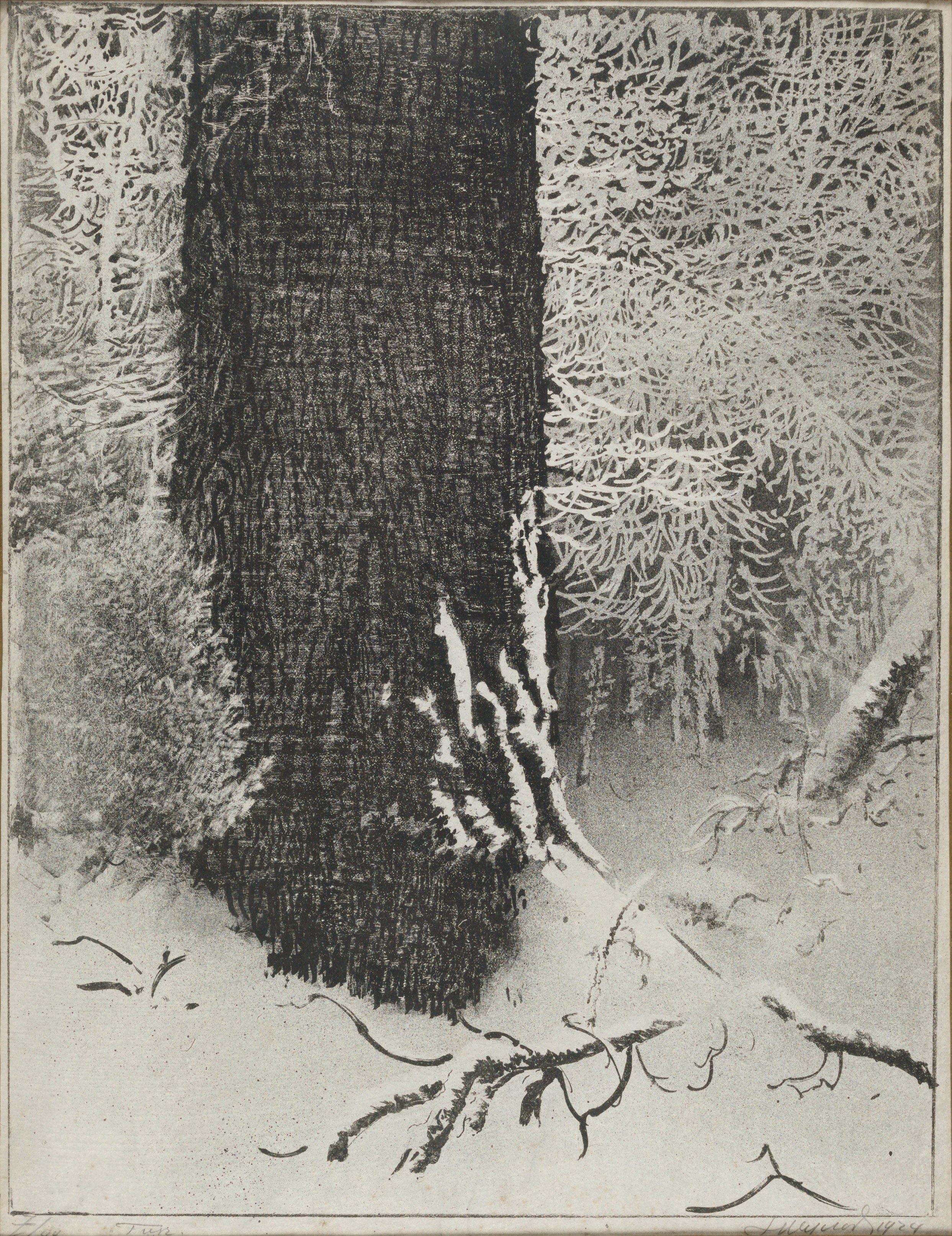 litografia (tuszem), tusz, prósz, papier; 48,5 x 37 (w św. passe-partout);
