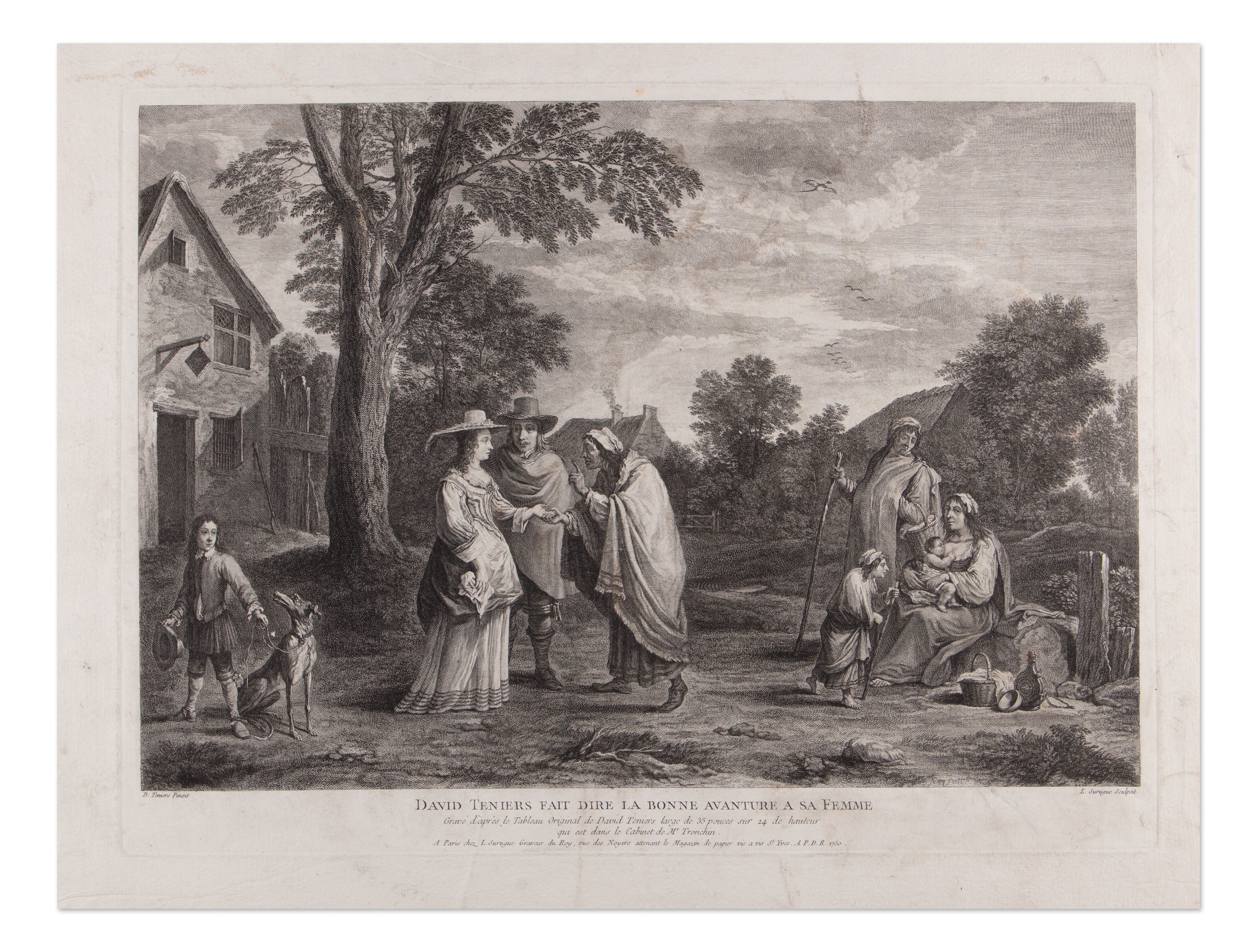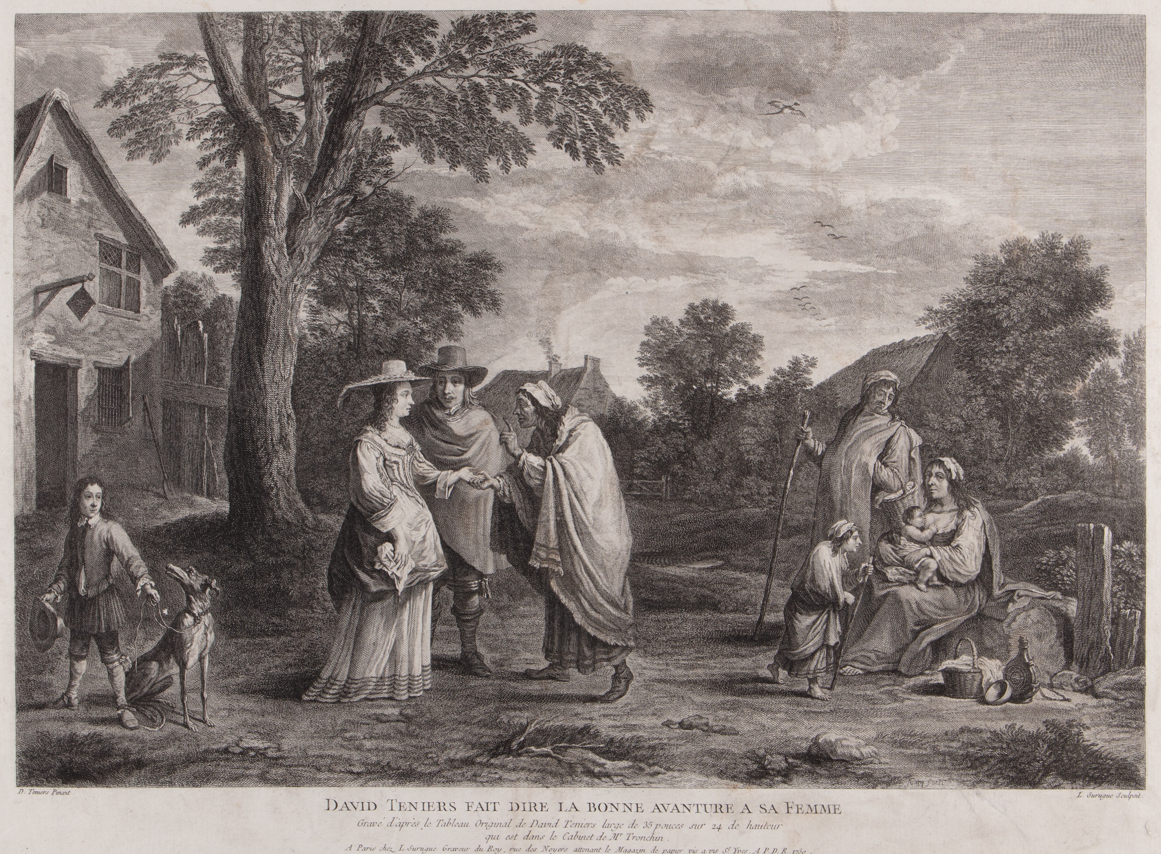 LOUIS SURUGUE DE SURGIS (FRANCE / FRENCH 1686 - 1762) - Fait dire la bonne aventure à sa femme (according to Teniers)