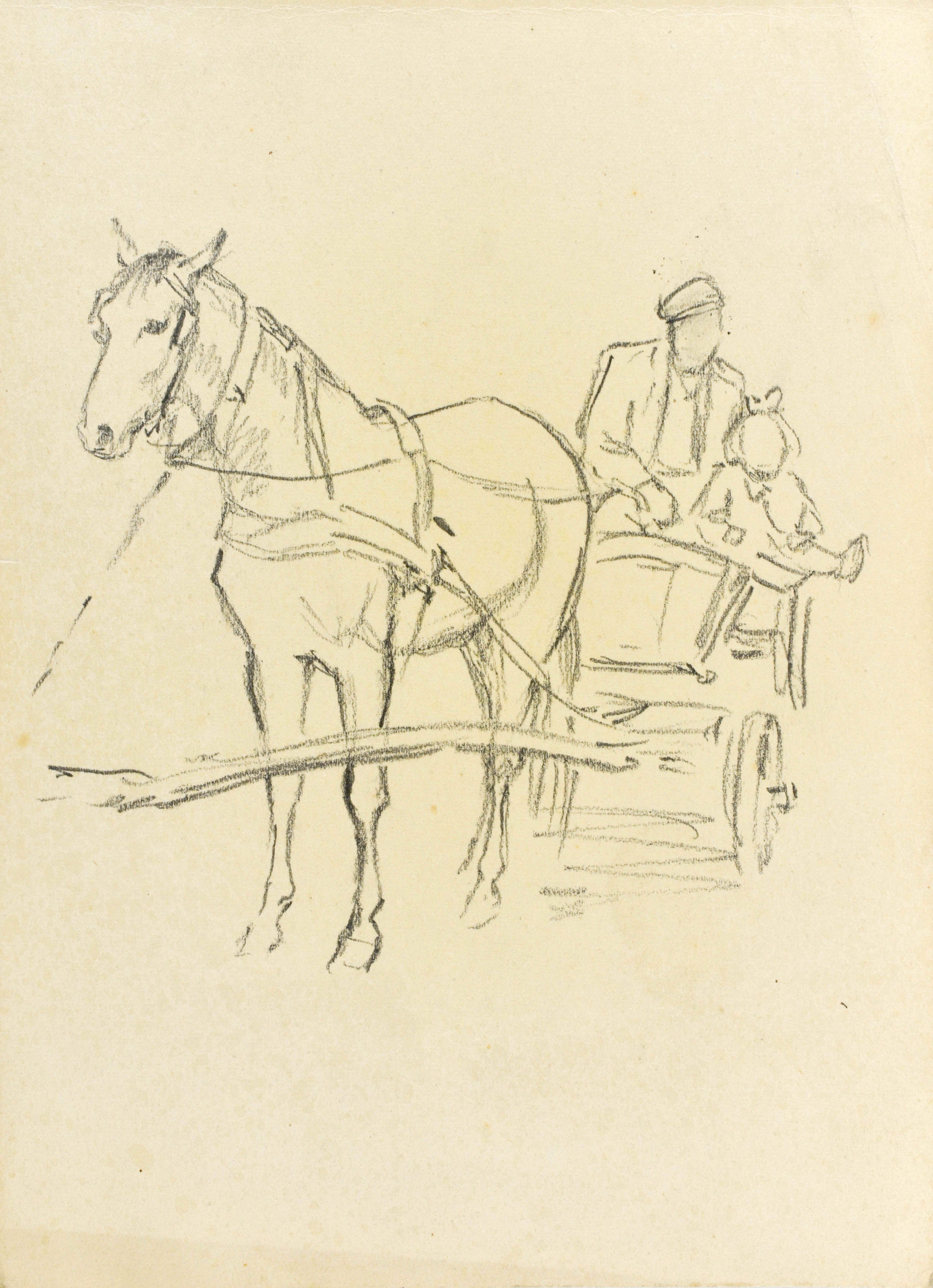Ludwik MACIĄG (1920-2007), Dziadek z wnuczką na furze