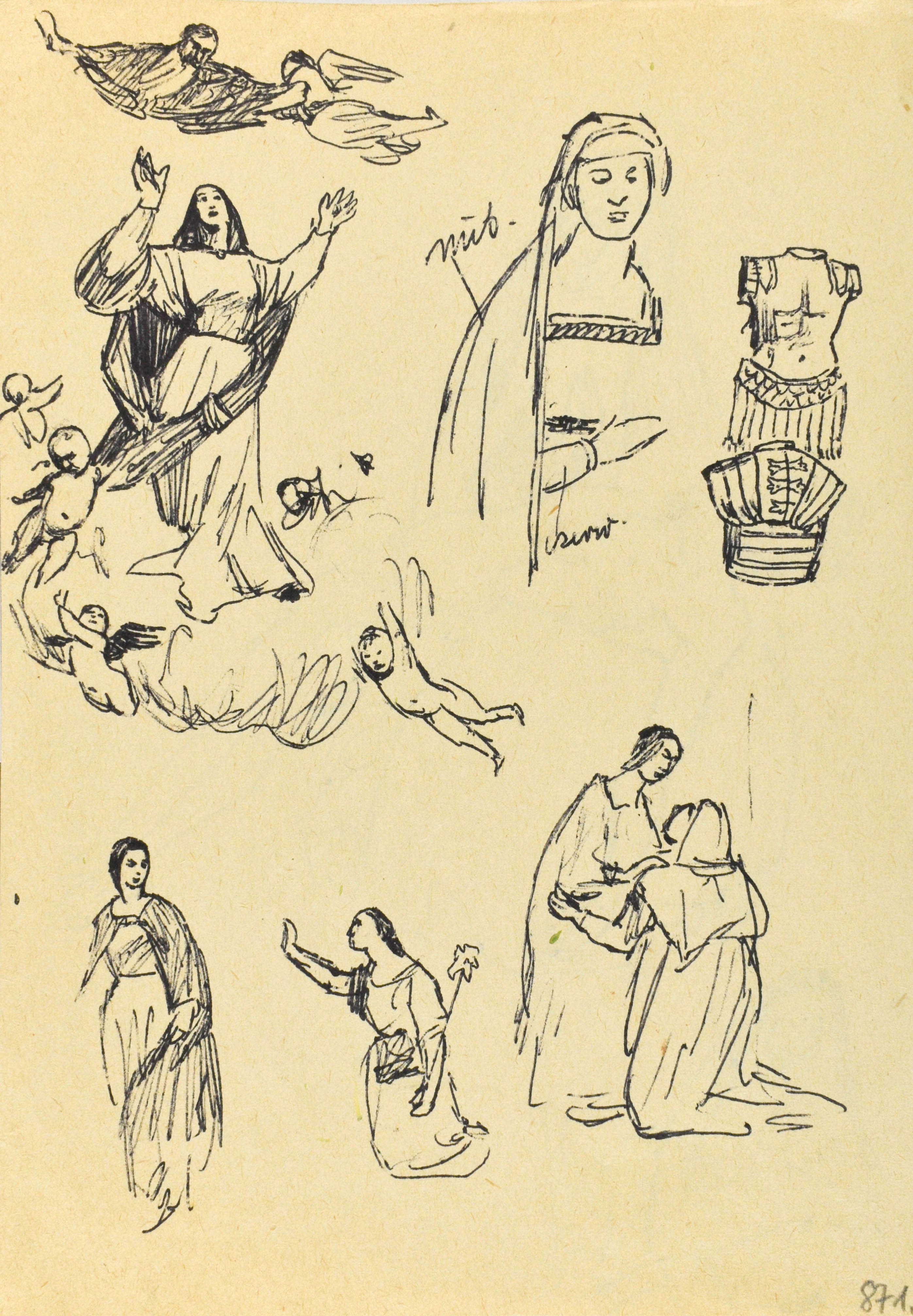 piórko, tusz, papier; 20,7 x 14,2 cm.