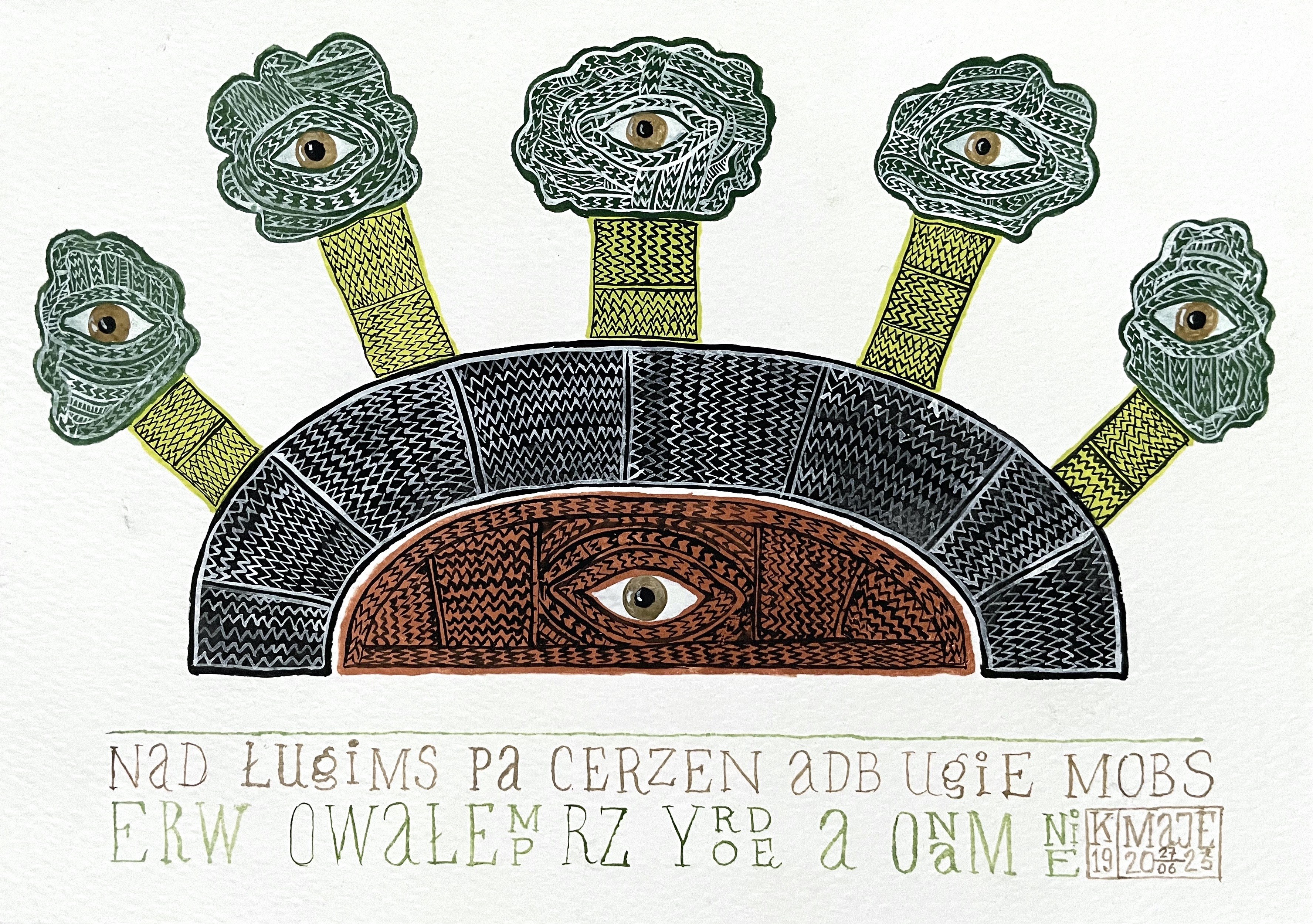 tempera, tusz, papier, 15x21 cm, sygn. pd.:MaJę 2023