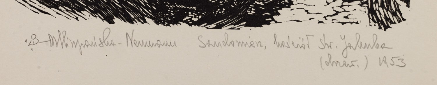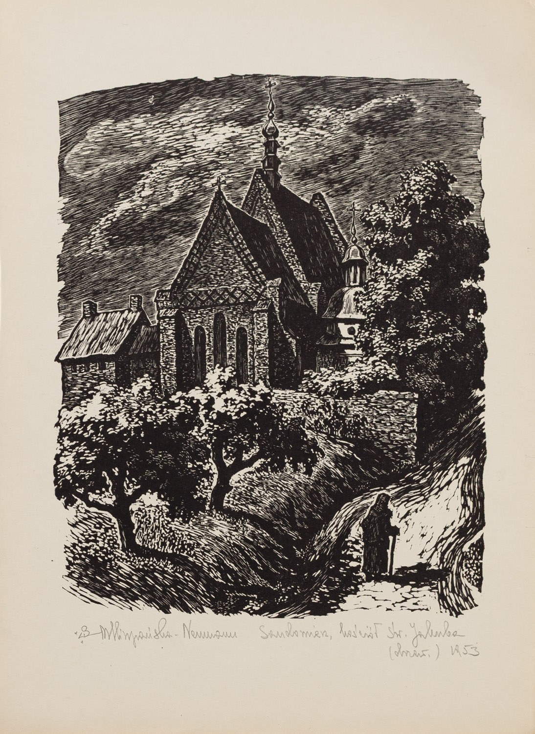 sygnowany, opisany i datowany ołówkiem u dołu: 'MHiszpańska-Neumann Sandomierz Kościół św. Jakuba | (drzew) 52'