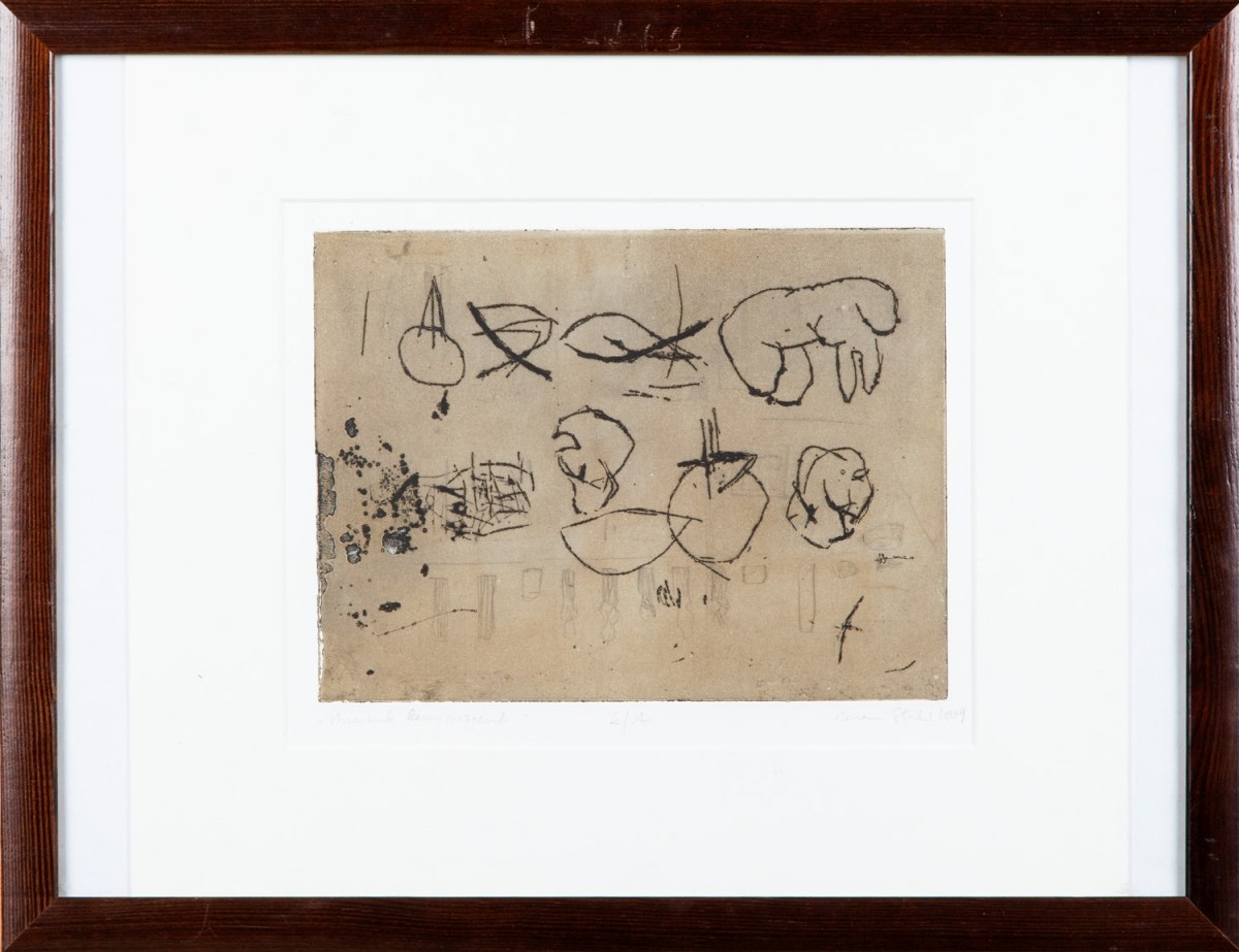 akwaforta, akwatinta, sucha igła, odbitka barwna, papier; 16,5 x 22 cm (odcisk płyty), 33,5 x 43,5 cm (oprawa, rama); opisana u dołu "Ancient Reminiscent" E/A Marianna Stuhr 2009; odbitka próbna