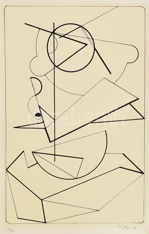 Martyn Ferenc (1899-1986): Geometrikus kompozíció, 1978. Szitanyomat, papír, jelzett. Számozott: 49/100. 48×31,5 cm ...