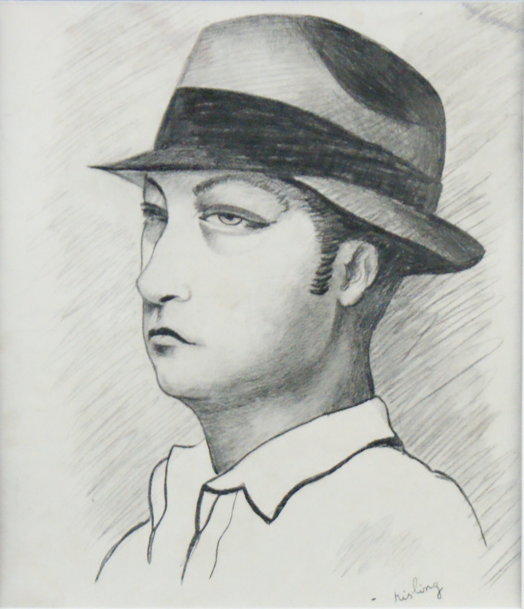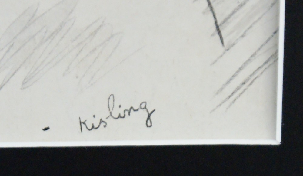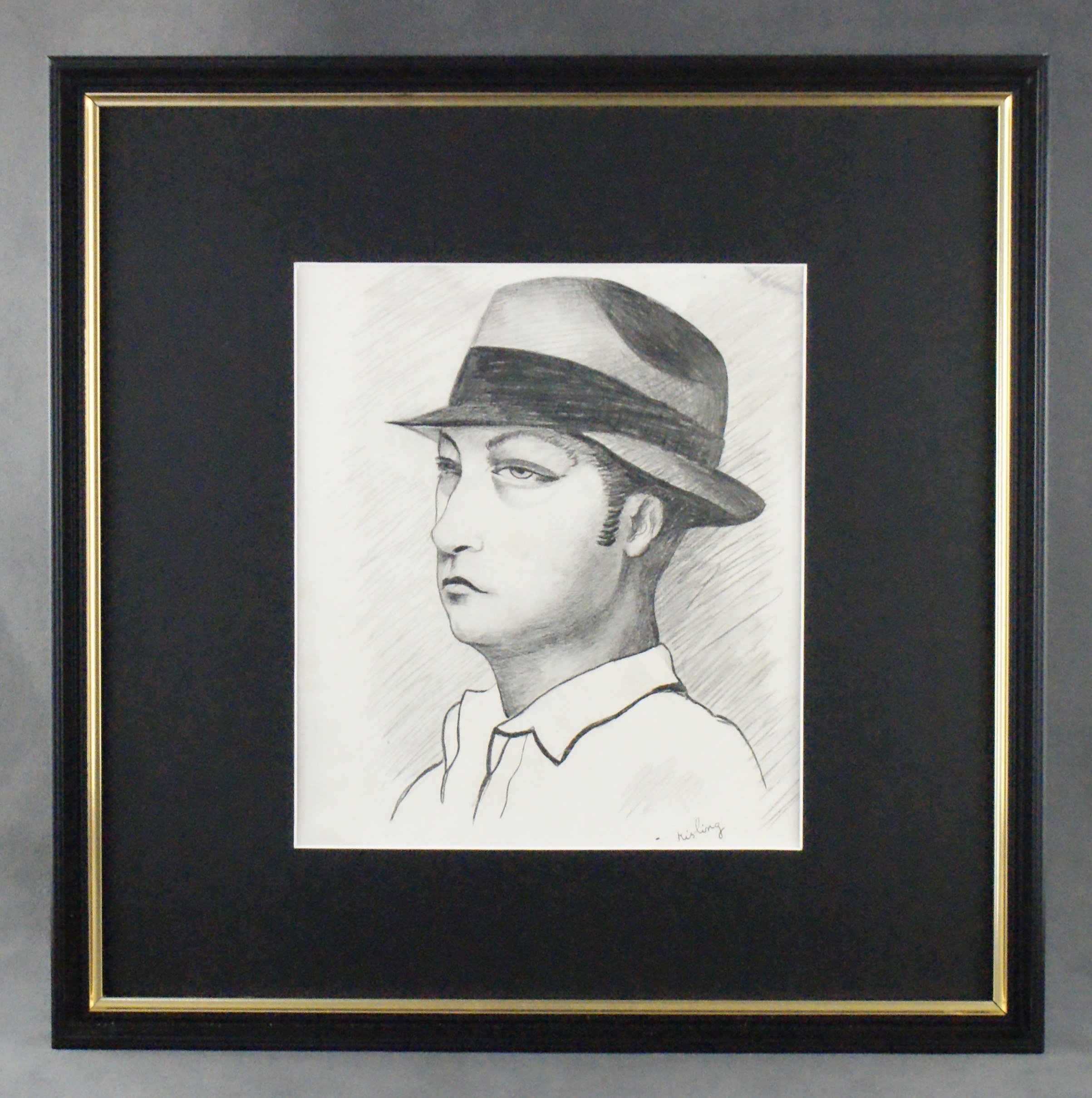 druk offsetowy papier: 23 x 20 cm w św, p-p. sygn.p.d „Kisling”( w druku), Grafika została opublikowana w 1934 roku w magazynie „Le Sourire” w specjalnym dodatku gdzie Kisling przedstawił swoją wizje głównego bohatera filmu Le Mac”. Praca oprawiona i zamontowana na odkwaszonej p-p. Stan: grafika przeszła drobne prace konserwatorskie, mimo to posiada kilka drobnych zabrudzeń i przebarwień .
